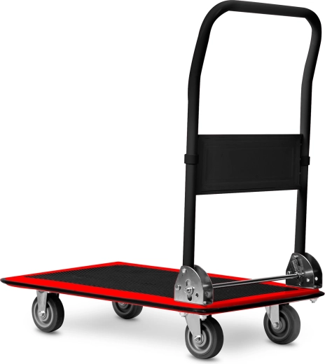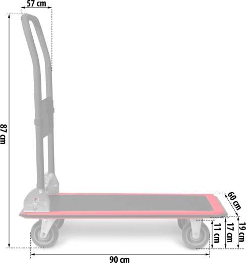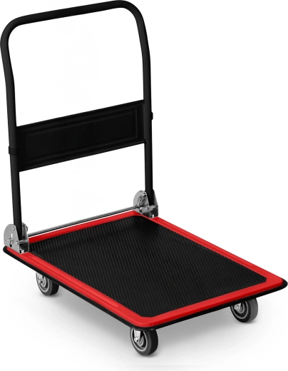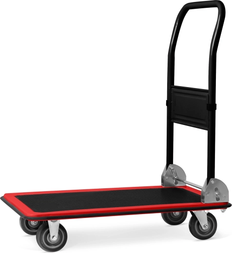 Praktyczny składany uchwyt znacząco oszczędza miejsce podczas przechowywania i pozwala na szybkie przygotowanie do pracy. Wózek sprawdzi się w magazynach, centrach logistycznych, przestrzeniach handlowych, usługach cateringowych, a także w domu podczas przeprowadzek lub w warsztacie.