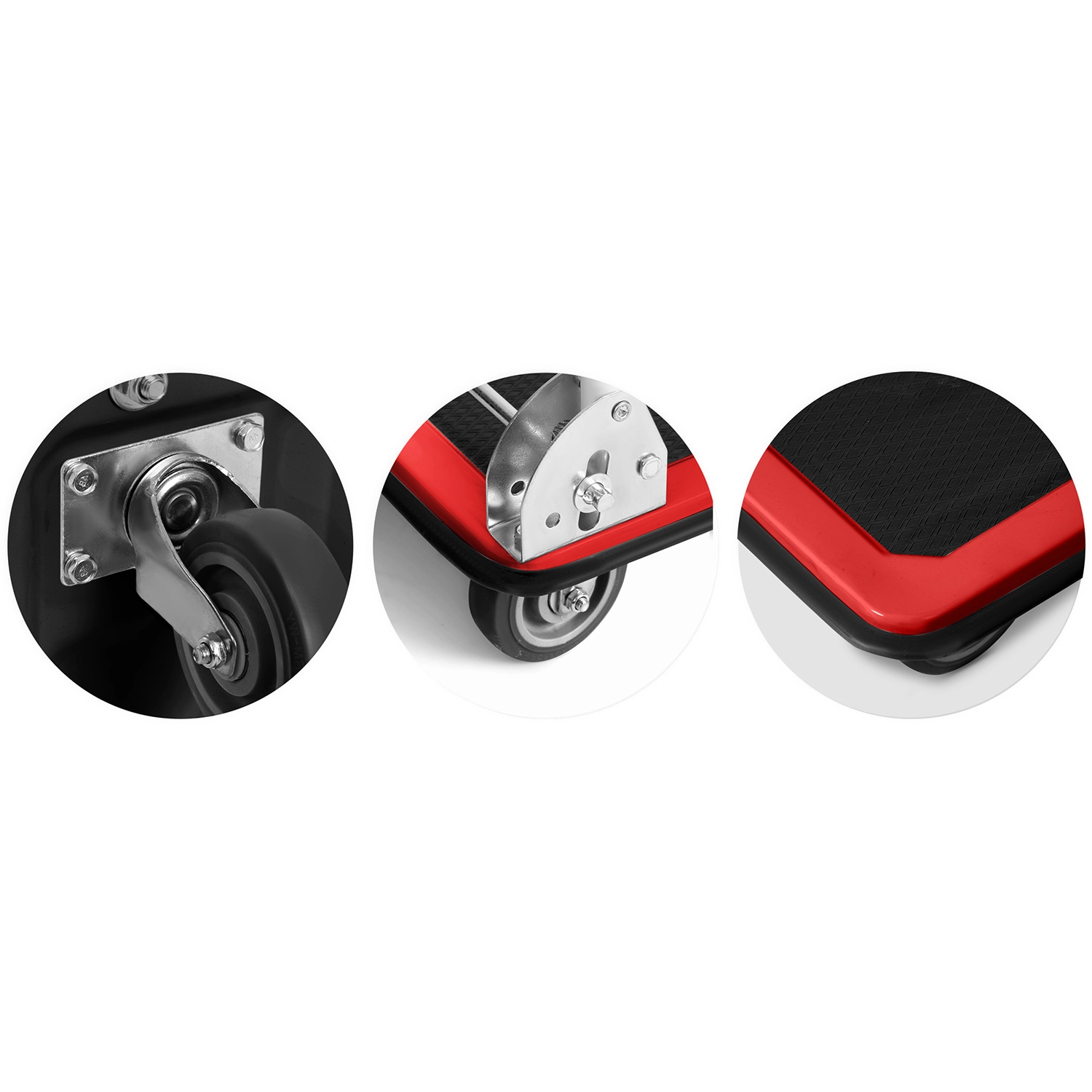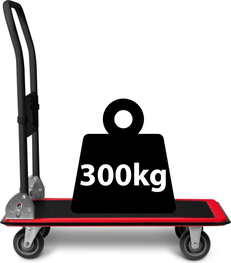 Ułatw sobie transport pudeł, paczek i wyposażenia dzięki wytrzymałemu wózkowi platformowemu o udźwigu do 300 kg. Stalowa rama z lakierem proszkowym oraz antypoślizgowa powierzchnia PVC zapewniają pewność przy każdym załadunku, a cztery kółka, w tym dwa w pełni obrotowe, gwarantują płynny ruch nawet w wąskich alejkach.