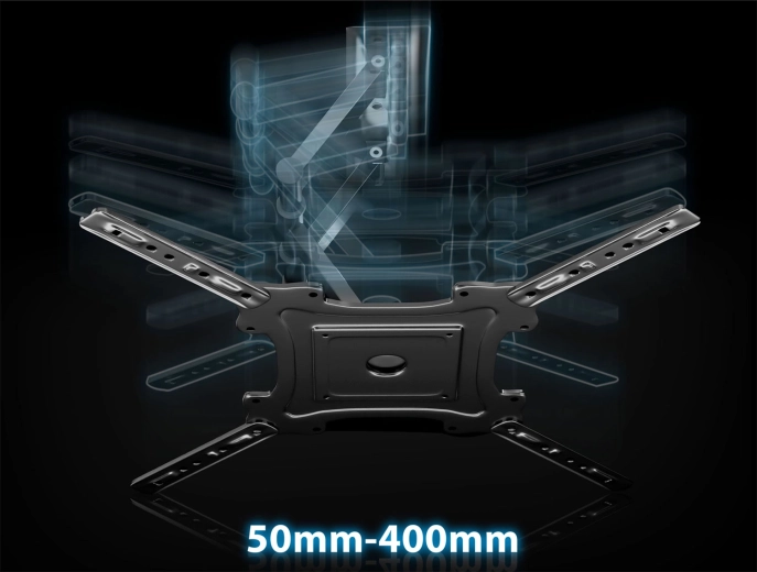 Korzystaj z wygodnego oglądania bez odblasków i pod idealnym kątem. Płynna regulacja odległości 50–400 mm, pochylenie od -5° do 8° oraz obrót do 180° pozwalają perfekcyjnie ustawić obraz z każdego miejsca w pomieszczeniu. Korekta montażu ±3° ułatwia precyzyjne wypoziomowanie po instalacji.