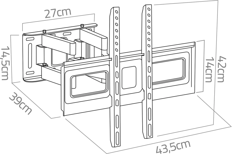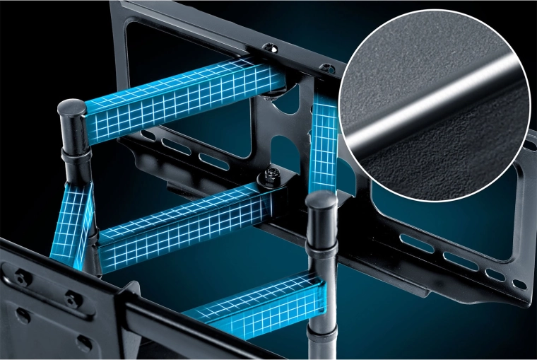 Szukasz niezawodnego uchwytu do dużego i ciężkiego telewizora? Stalowy uchwyt HUMBERG o udźwigu 70 kg zapewni stabilność i bezpieczeństwo także dla większych modeli. Dzięki płynnemu wysuwowi 6,5–43 cm od ściany z łatwością dopasujesz położenie telewizora do przestrzeni i uzyskasz czysty wygląd bez kompromisów.