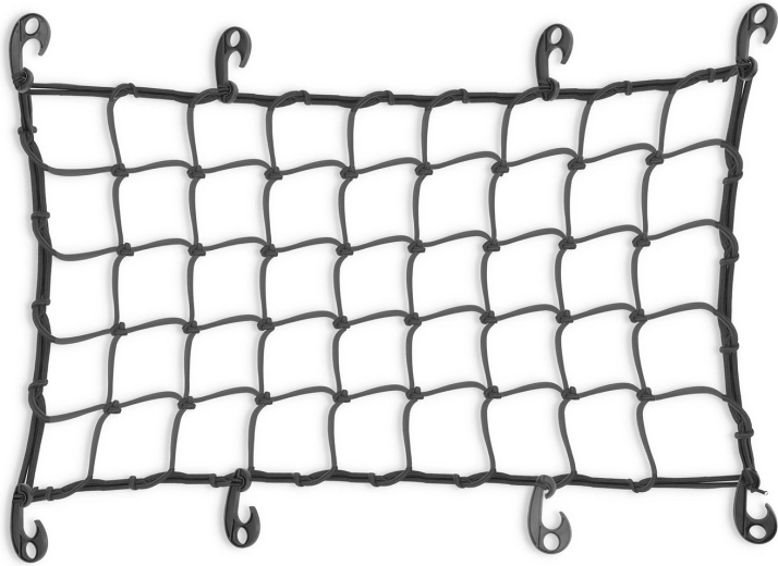 W komplecie znajduje się wytrzymała i elastyczna siatka z 8 hakami, która utrzyma ładunek stabilnie na miejscu nawet podczas jazdy po nierównościach.