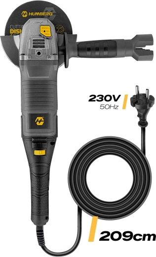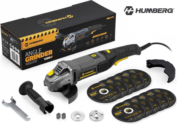 Wydajna szlifierka kątowa HUMBERG z silnikiem 1200 W, płynną regulacją obrotów 3000–12000 obr./min i gwintem M14 jest idealna do cięcia i szlifowania metalu, betonu, kamienia oraz ceramiki. W zestawie znajdziesz 10 tarcz 125 mm, boczny uchwyt z 3 pozycjami, metalową osłonę tarczy oraz akcesoria do szybkiej wymiany. Długi przewód 209 cm i niskie wibracje zapewniają wygodną i bezpieczną pracę w domu i warsztacie.