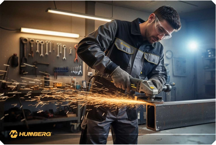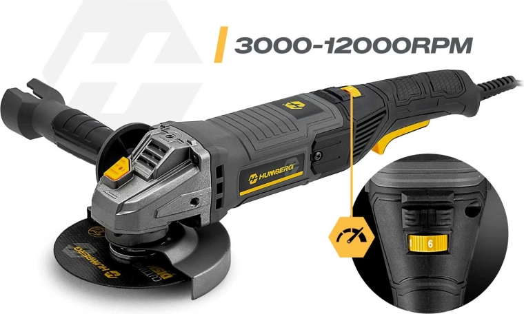 HUMBERG szlifierka kątowa 1200 W łączy wysoką moc, precyzję i bezpieczeństwo. Dzięki regulacji obrotów 3000–12000 obr./min łatwo dopasujesz prędkość do materiału i zadania – od delikatnego szlifowania po szybkie cięcie. Metalowa osłona, antypoślizgowy uchwyt i zredukowane wibracje zapewniają pewną i komfortową kontrolę.