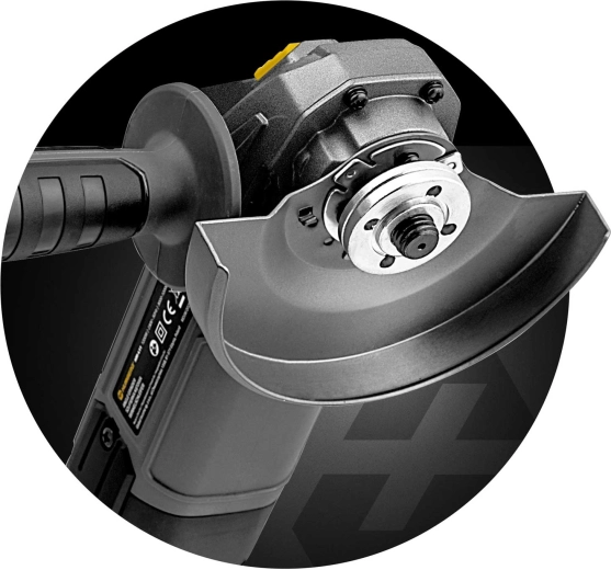- Szlifierka kątowa, antypoślizgowy uchwyt, metalowa osłona tarczy, plastikowa podkładka tarczy, 10 tarcz do metalu (125 mm), klucz montażowy, 2 zapasowe szczotki węglowe, kolorowe opakowanie, instrukcja obsługi
