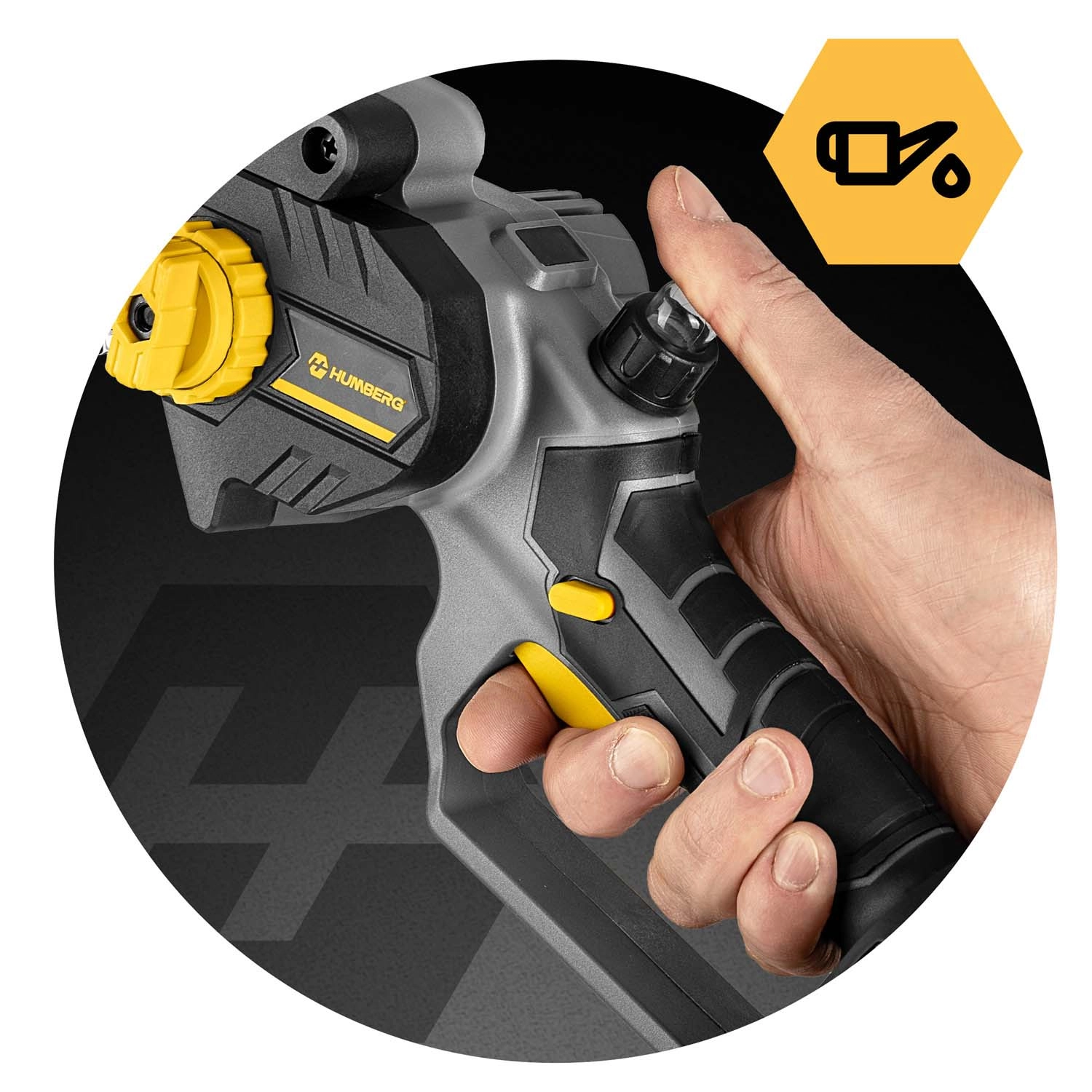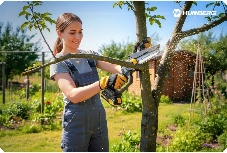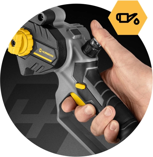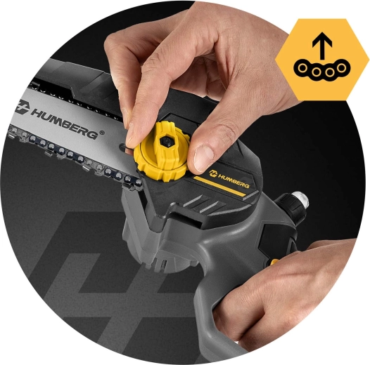 Akumulatorowa mini pilarka Humberg łączy silnik bezszczotkowy o prędkości do 21 000 obr./min dla stabilnej mocy bez zacinania. Dzięki automatycznemu olejowaniu i osłonie łańcucha tnie szybko i bezpiecznie. Bezkluczczowe napinanie za pomocą bocznego pokrętła skraca przygotowania – po prostu przekręcasz i tniesz.