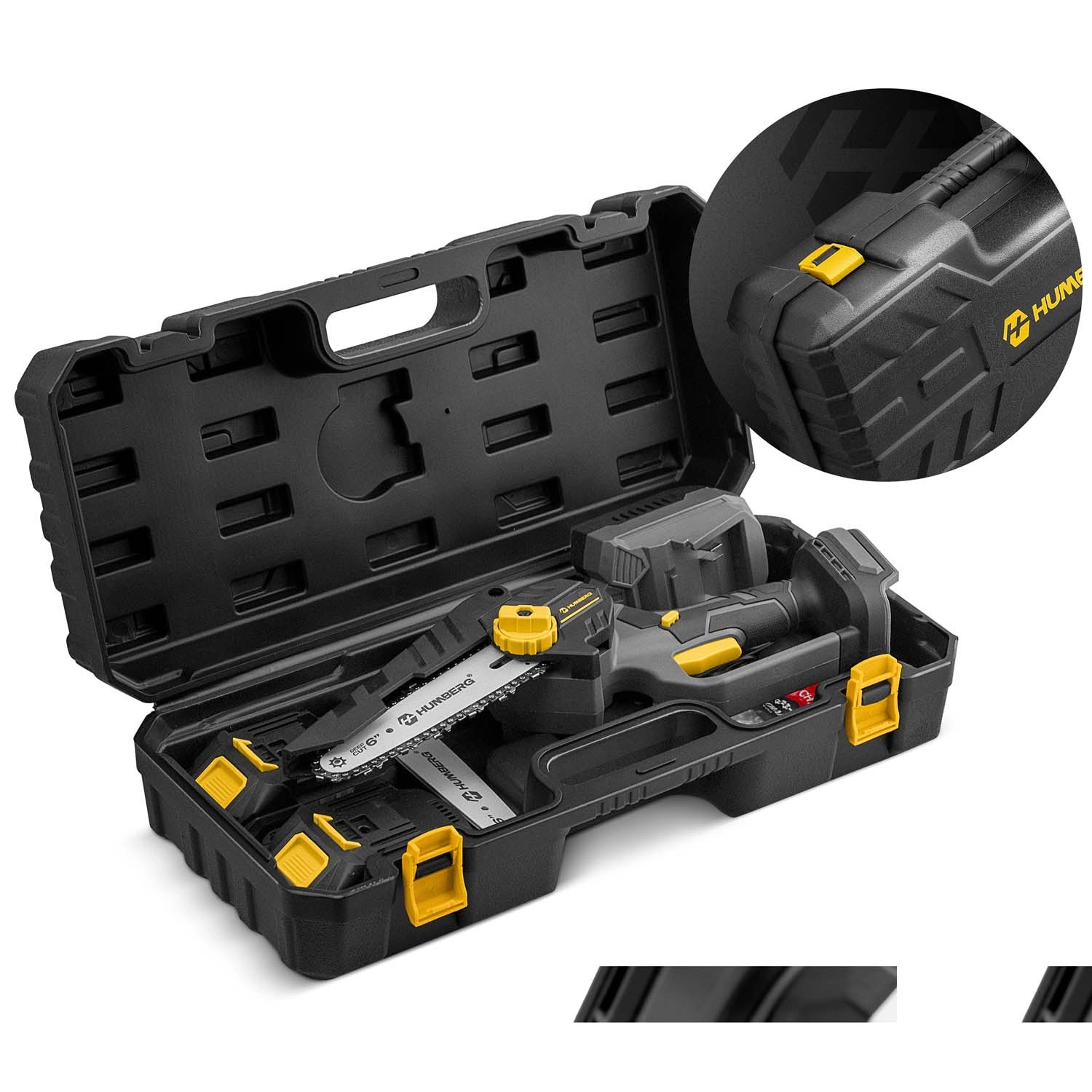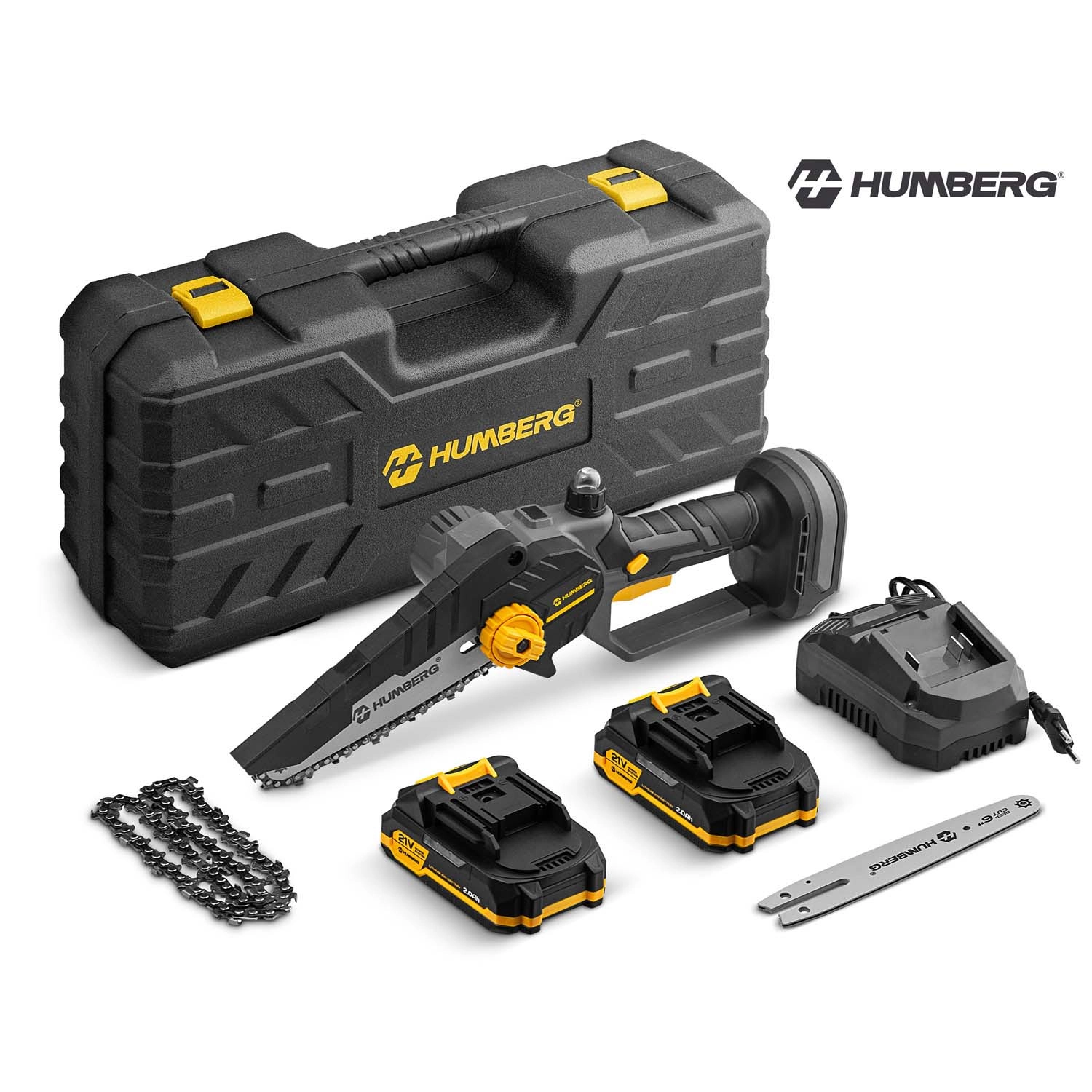 Kompaktowa i wydajna akumulatorowa mini pilarka Humberg z silnikiem bezszczotkowym oferuje szybkie i płynne cięcie do 8,2 m/s, automatyczne smarowanie łańcucha oraz bezkluczczową regulację naciągu. W zestawie znajdziesz 2× akumulator 21 V 2 Ah, 2× prowadnicę 6" i 2× łańcuch – wszystko przejrzyście ułożone w wytrzymałej walizce dla łatwego transportu. Idealna do przycinania gałęzi, prac ogrodowych i lekkich zadań ciesielskich, zapewnia maksymalny komfort dzięki ergonomicznej, gumowanej rękojeści i niskiej masie 1,4 kg.