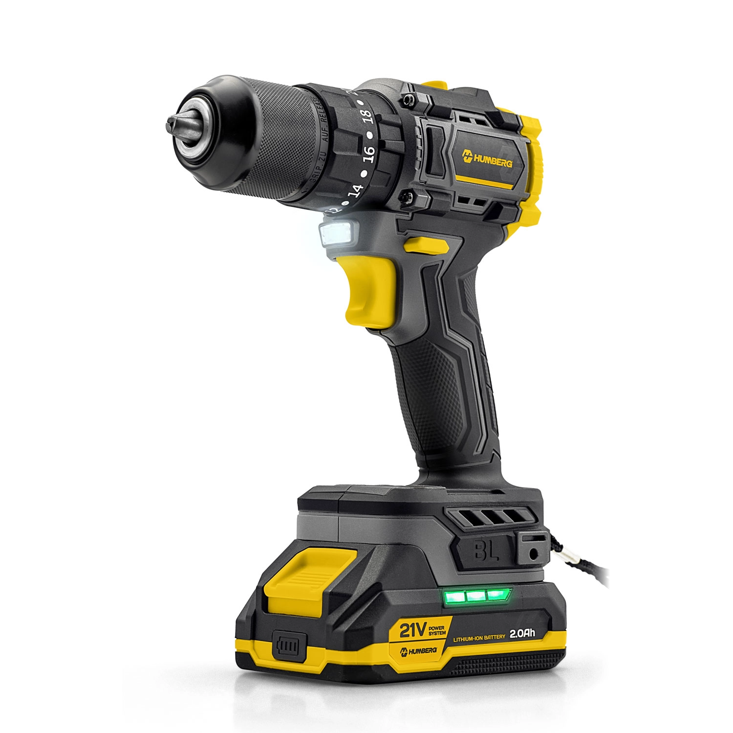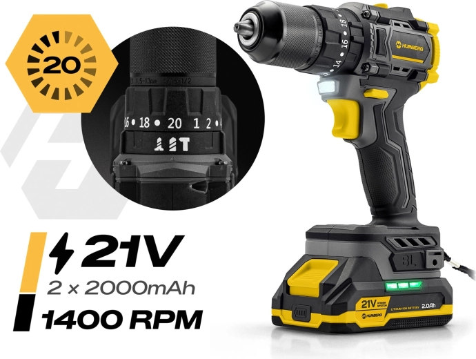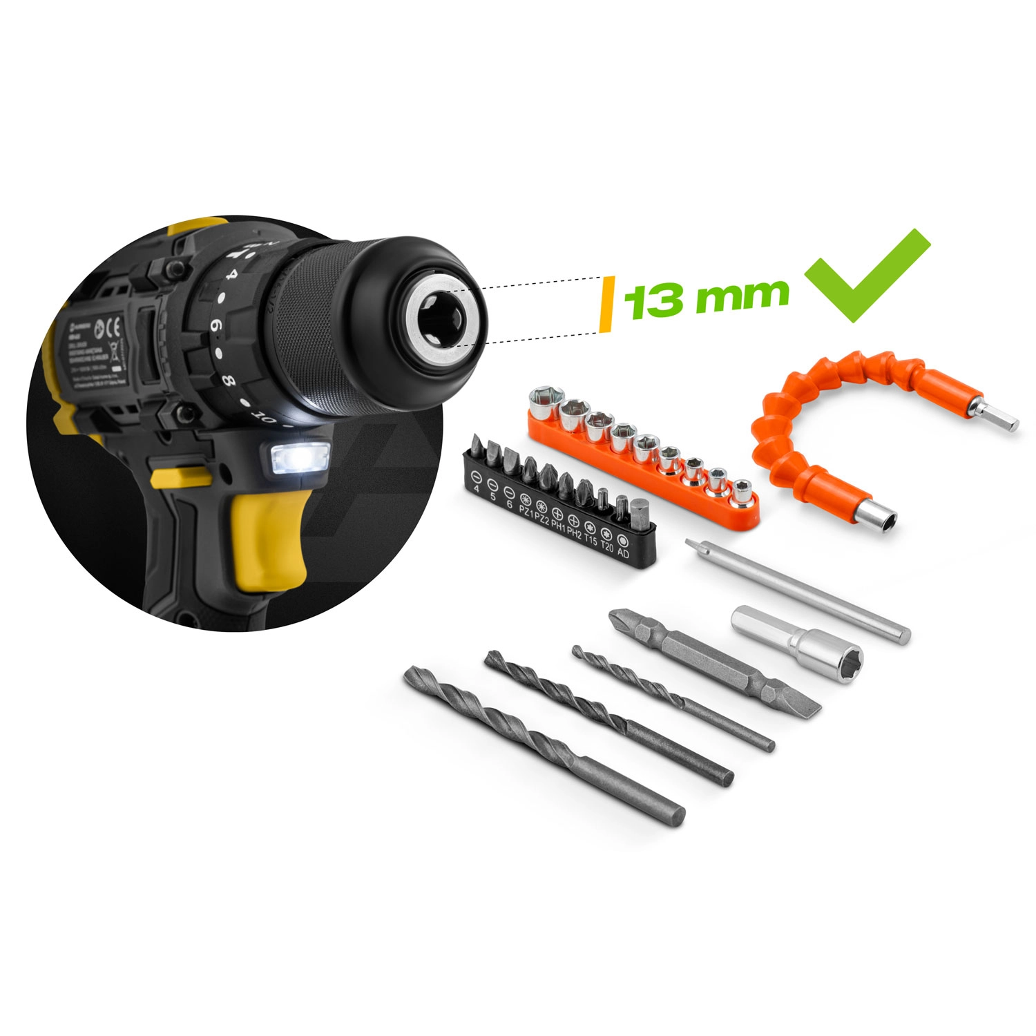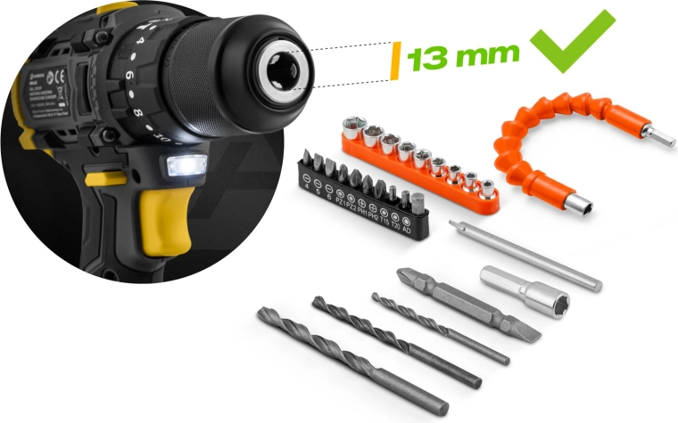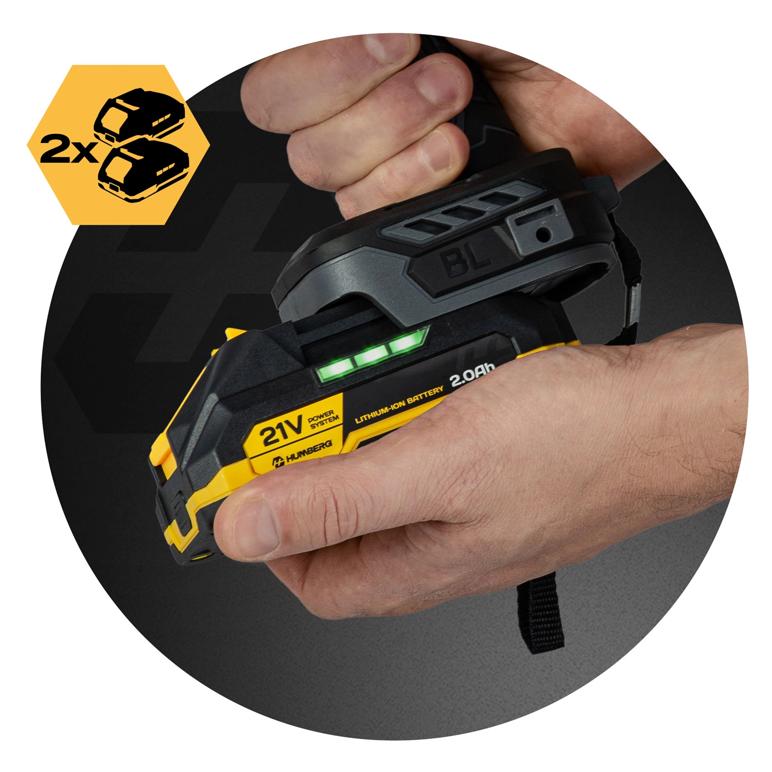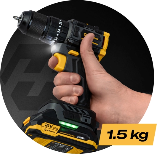 Ta akumulatorowa wiertarko-wkrętarka udarowa poradzi sobie z precyzyjnym wkręcaniem, szybkim wierceniem oraz wierceniem z udarem w twardszych materiałach. Silnik bezszczotkowy zapewnia wyższą wydajność, dłuższą żywotność i płynną pracę bez szarpania. Dzięki dwóm akumulatorom 21 V 2 Ah możesz pracować bez przerw – gdy jeden się ładuje, drugi jest w użyciu.