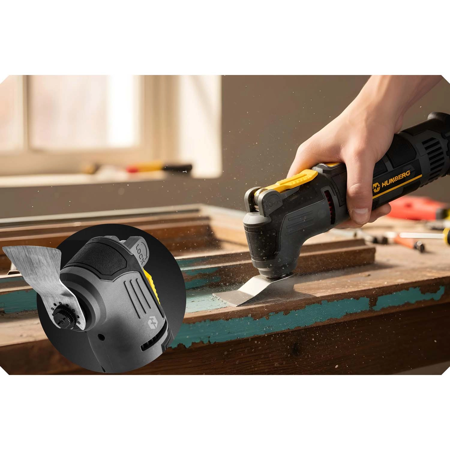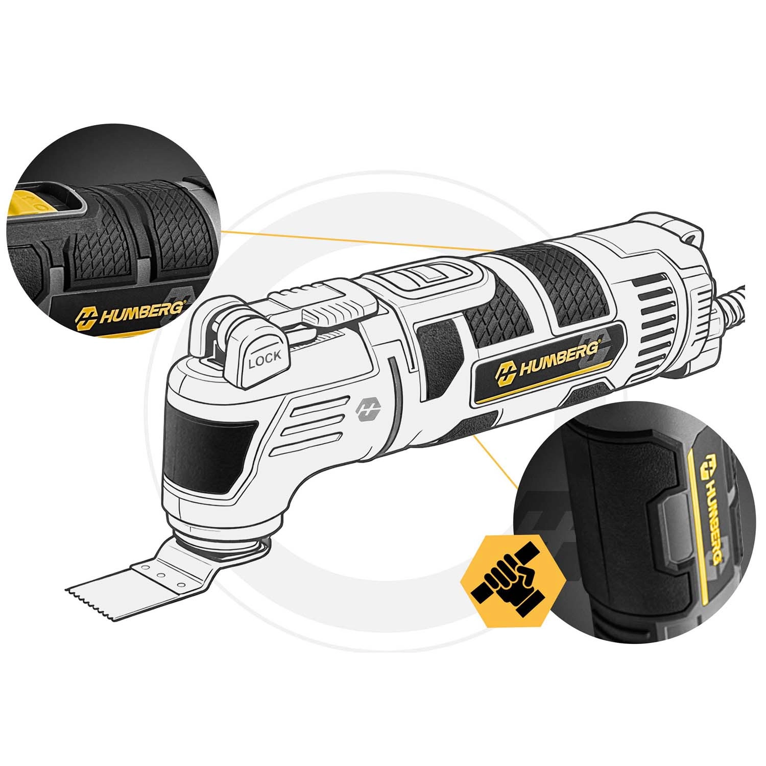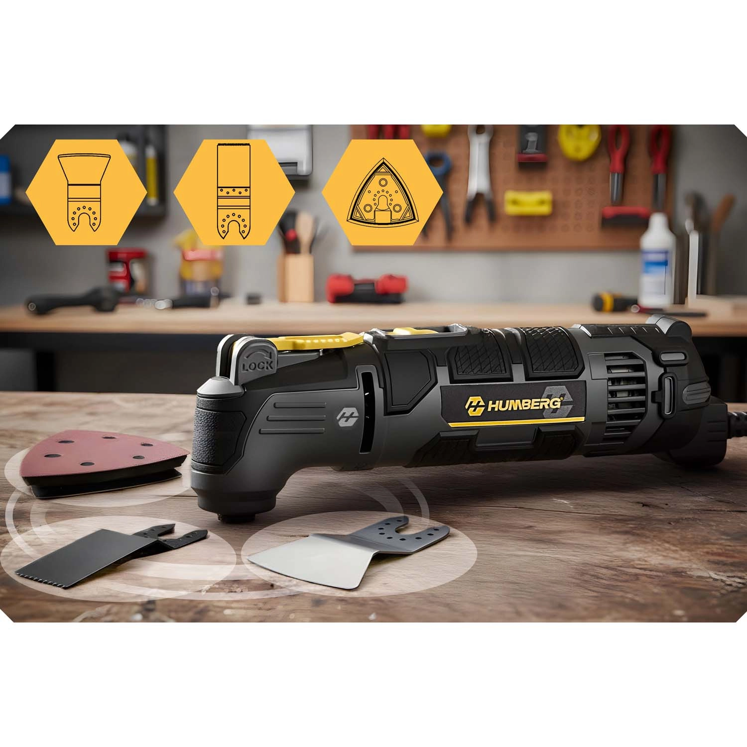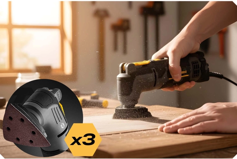 Wydajna, wielofunkcyjna oscylacyjna szlifierka 3w1 HUMBREG z silnikiem 310 W oferuje 6 stopni regulacji prędkości 15 000–21 000 obr./min, kąt oscylacji 3° oraz szybkozaciskowy system do błyskawicznej wymiany akcesoriów. Idealna do szlifowania, cięcia i skrobania w warsztacie i domu. Ergonomiczny, antypoślizgowy uchwyt zapewnia precyzję i komfort nawet podczas dłuższej pracy.
