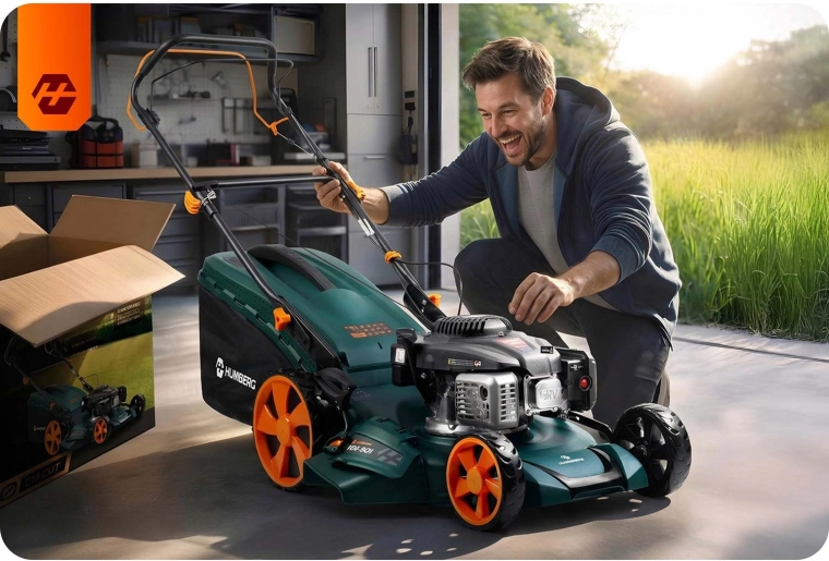 - Centralna regulacja wysokości 6 pozycji (30–80 mm) – od trawnika ozdobnego po przerośnięty.