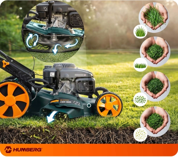 - 3 w 1: zbieranie, wyrzut boczny, mulczowanie – elastyczność dla każdego typu trawnika.