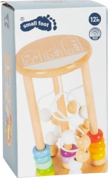 Ten wysokiej jakości drewniany walec w tęczowych kolorach oferuje dzieciom od 12 miesięcy niekończące się możliwości odkrywania. Kolorowe koraliki poruszają się po krętych i prostych torach, co rozwija koordynację ręka–oko oraz logiczne myślenie. Po potrząśnięciu zabawka przyjemnie grzechocze i zapewnia stymulację zmysłów.