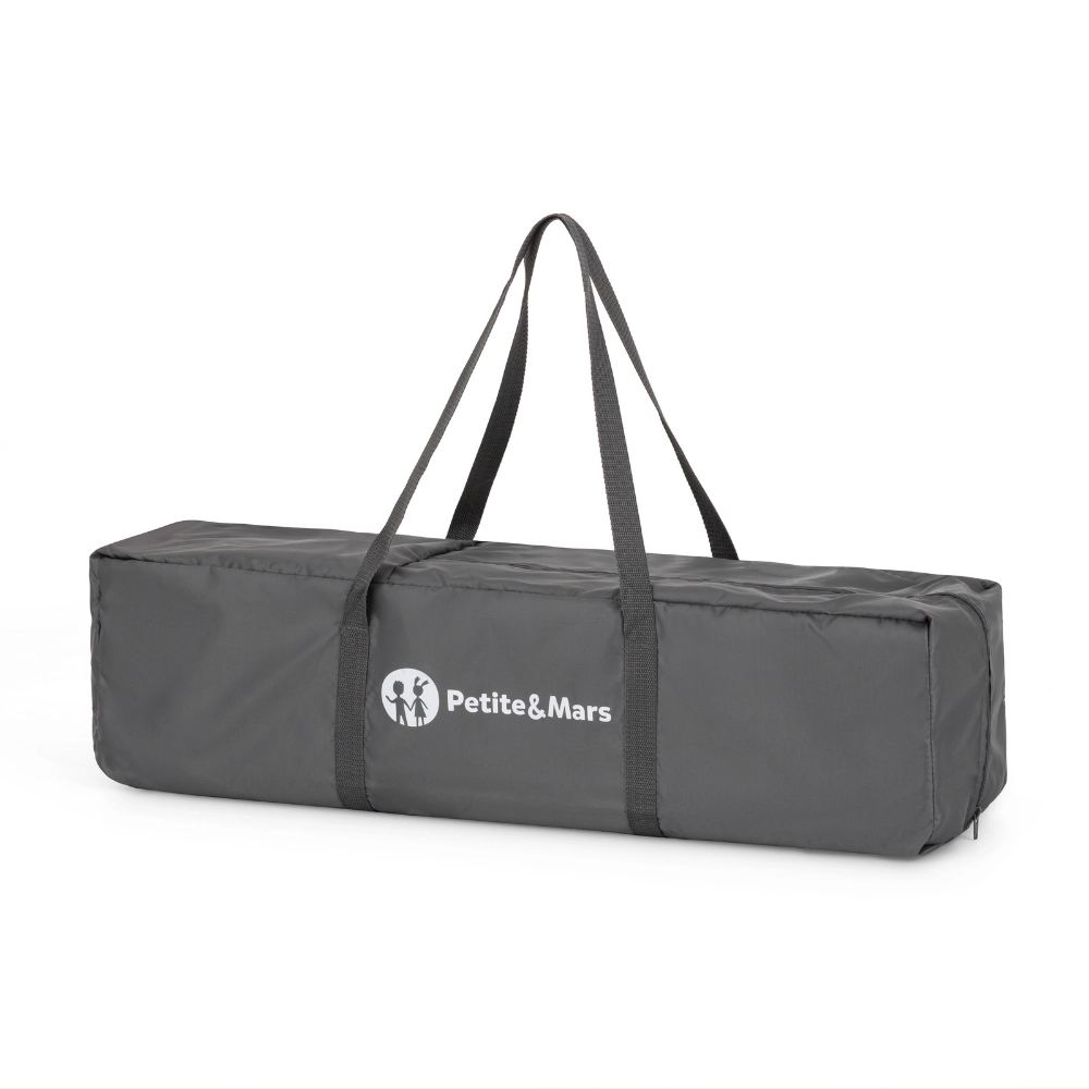 Lekkie i kompaktowe łóżeczko turystyczne PETITE&MARS Koot Lite w eleganckim ciemnoszarym kolorze jest idealne w podróży i w domu. Oferuje stabilną metalową konstrukcję, oddychające boczne ścianki z siatki dla lepszej cyrkulacji powietrza oraz system bezpieczeństwa Double Lock zapobiegający samoczynnemu złożeniu. Łatwo się składa, mieści się do torby transportowej i jest odpowiednie dla dzieci do 15 kg.