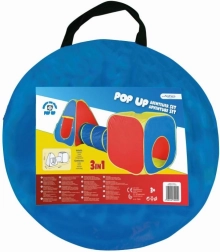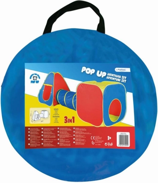 Zabawny zestaw namiotów pop-up 3 w 1 zamieni pokój lub ogród w dziecięcy plac zabaw. Zawiera sześcienny namiot, tunel oraz namiot pop-up, które można używać razem lub osobno. Szybkie rozłożenie bez wysiłku, lekka konstrukcja i łatwe przechowywanie gwarantują wygodną zabawę w domu i na zewnątrz.