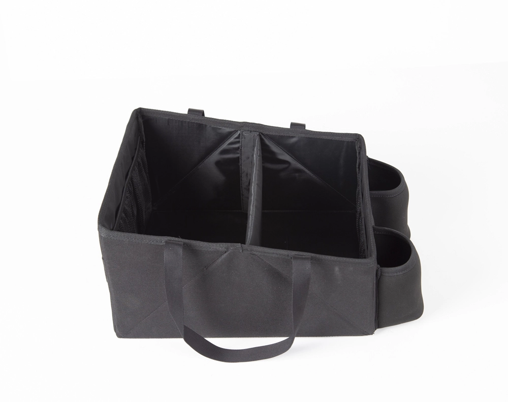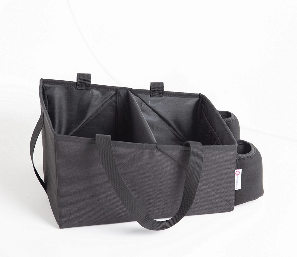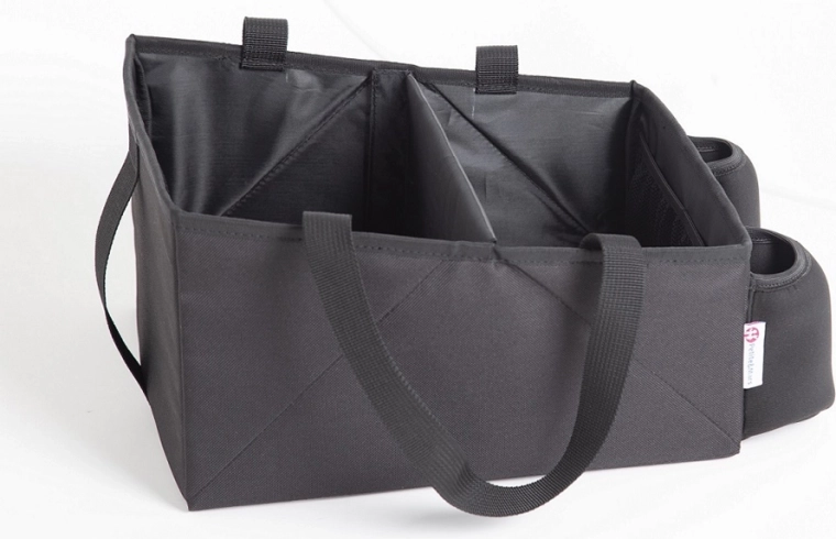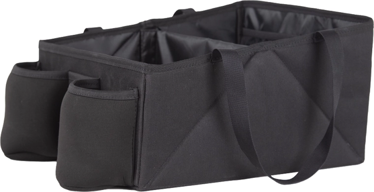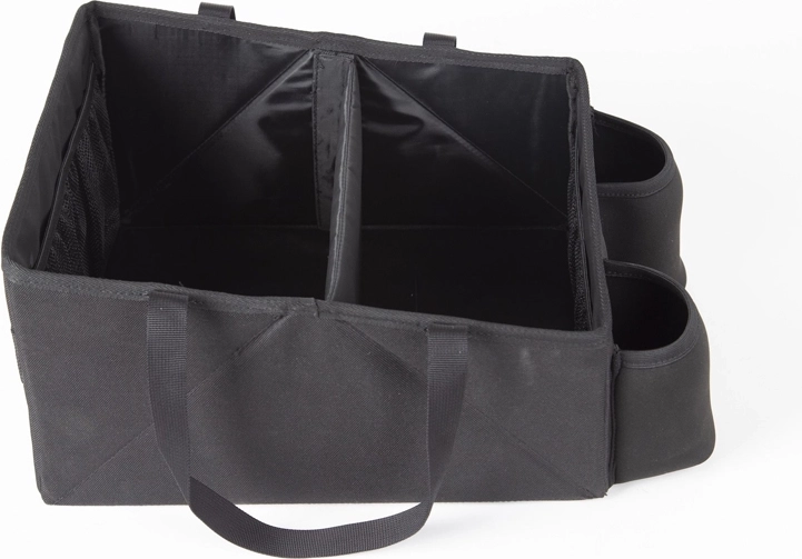 Łatwe mocowanie pasem bezpieczeństwa na tylnym siedzeniu lub między dwoma fotelikami dziecięcymi. W bagażniku trzyma kształt i utrzymuje rzeczy na miejscu.