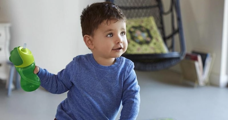 Elastyczna słomka pozwala dzieciom wygodnie pić pod dowolnym kątem i sięgnąć aż do dna kubka bez przerywania zabawy.