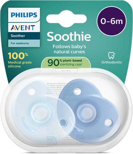 Smoczek Philips Avent Soothie został zaprojektowany we współpracy z pracownikami ochrony zdrowia i jest dystrybuowany w szpitalach w USA. Dzięki jednoczęściowemu silikonowemu korpusowi jest łatwy do umycia, nie zatrzymuje wody i zapewnia maksymalny komfort nawet najmłodszym. Unikalny otwór na palec pozwala rodzicowi delikatnie wspierać ssanie i wzmacniać wzajemną więź.
