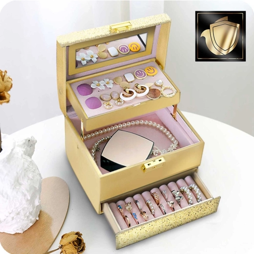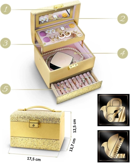 Odkryj praktyczną i pięknie wykonaną szkatułkę, która ochroni Twoją kolekcję, a jednocześnie ozdobi toaletkę. Kompaktowe wymiary 17,5 × 13,7 × 12,5 cm mieszczą się w szufladzie i torbie podróżnej, a solidne materiały, wysokiej jakości zamek i przemyślane wnętrze utrzymają wszystko na swoim miejscu.