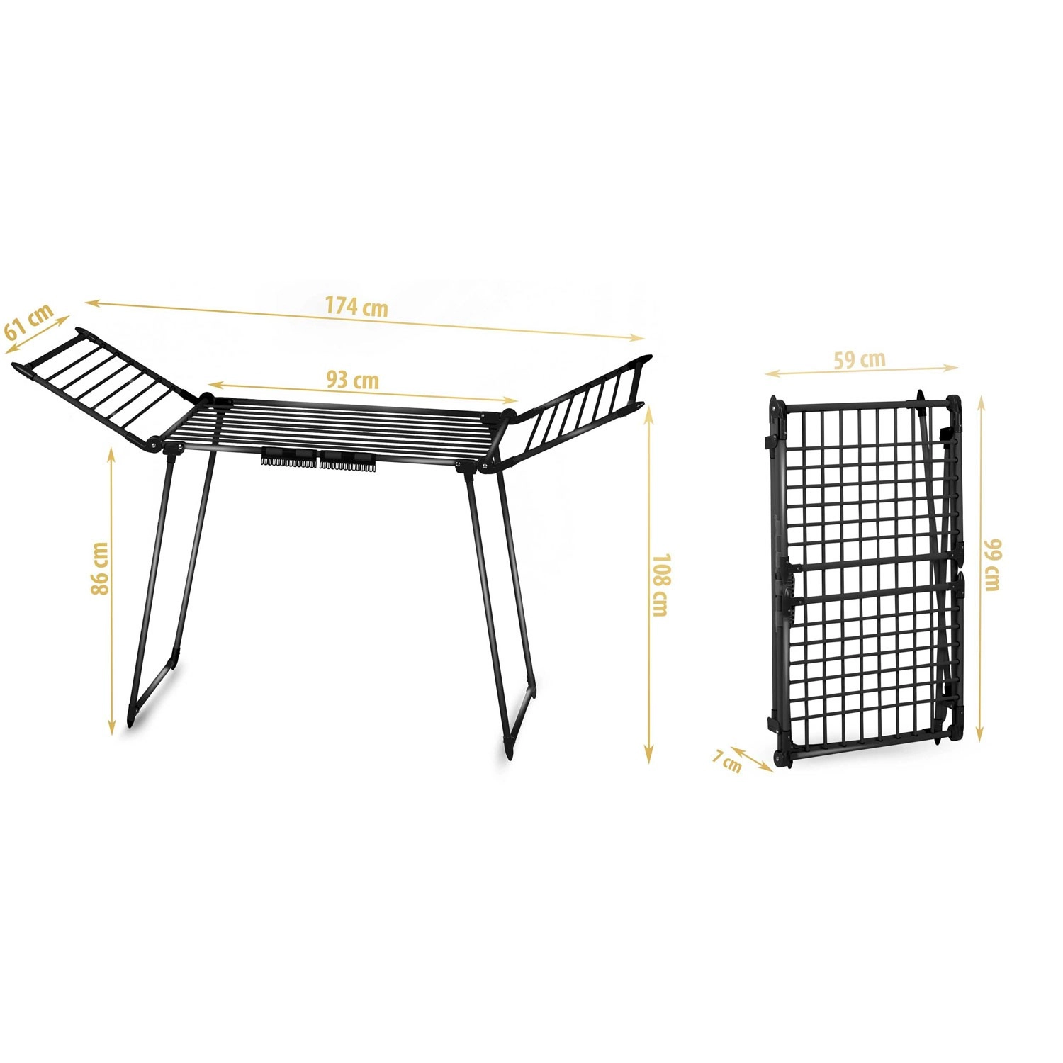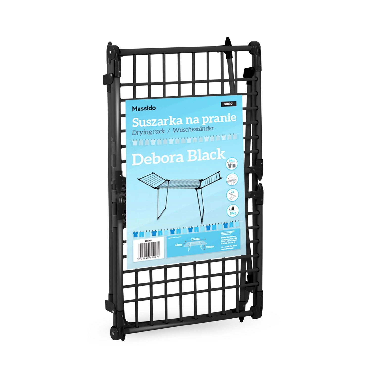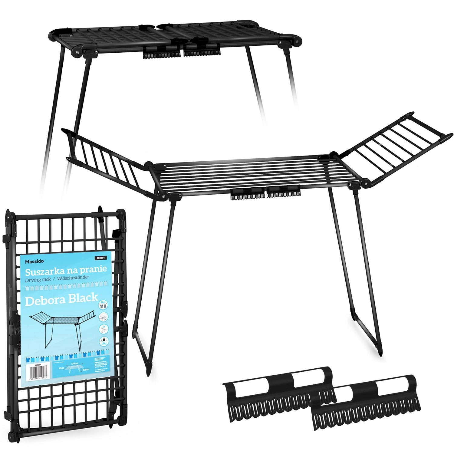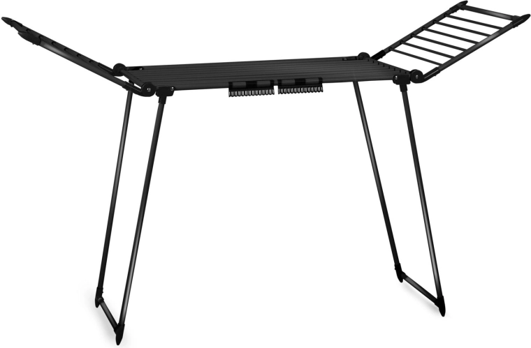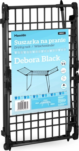 Utrzymaj porządek w domu z suszakiem DEBORA SLIM BLACK. Stabilna metalowa konstrukcja w eleganckim czarnym kolorze świetnie pasuje do nowoczesnych wnętrz, a przemyślany design ze składanymi skrzydłami zapewnia dość miejsca także na większe pranie. 19 metrów powierzchni suszenia pozwala wygodnie wysuszyć koszule, ręczniki i pościel.