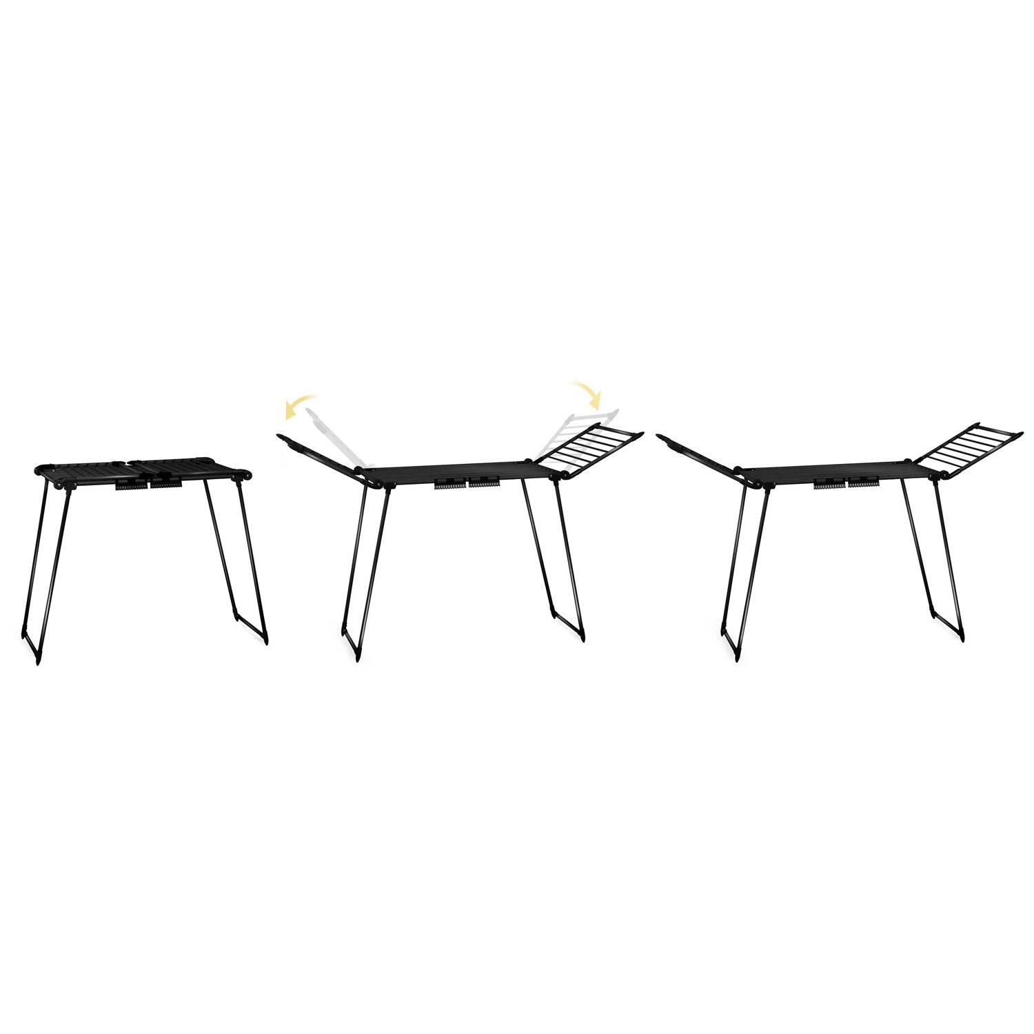 Skrzydła rozszerzają powierzchnię dokładnie według potrzeb. Mechanizm umożliwia łatwe złożenie i kompaktowe przechowywanie.