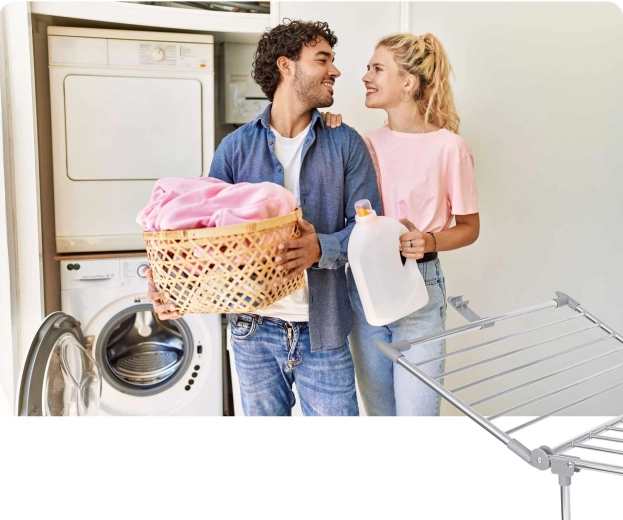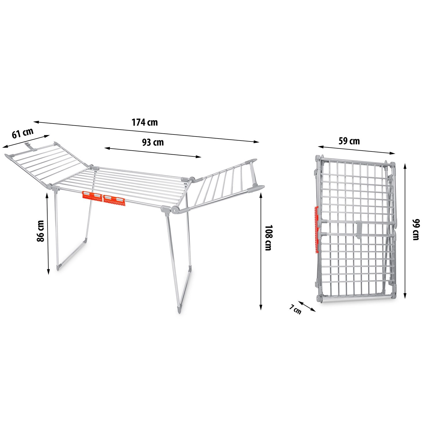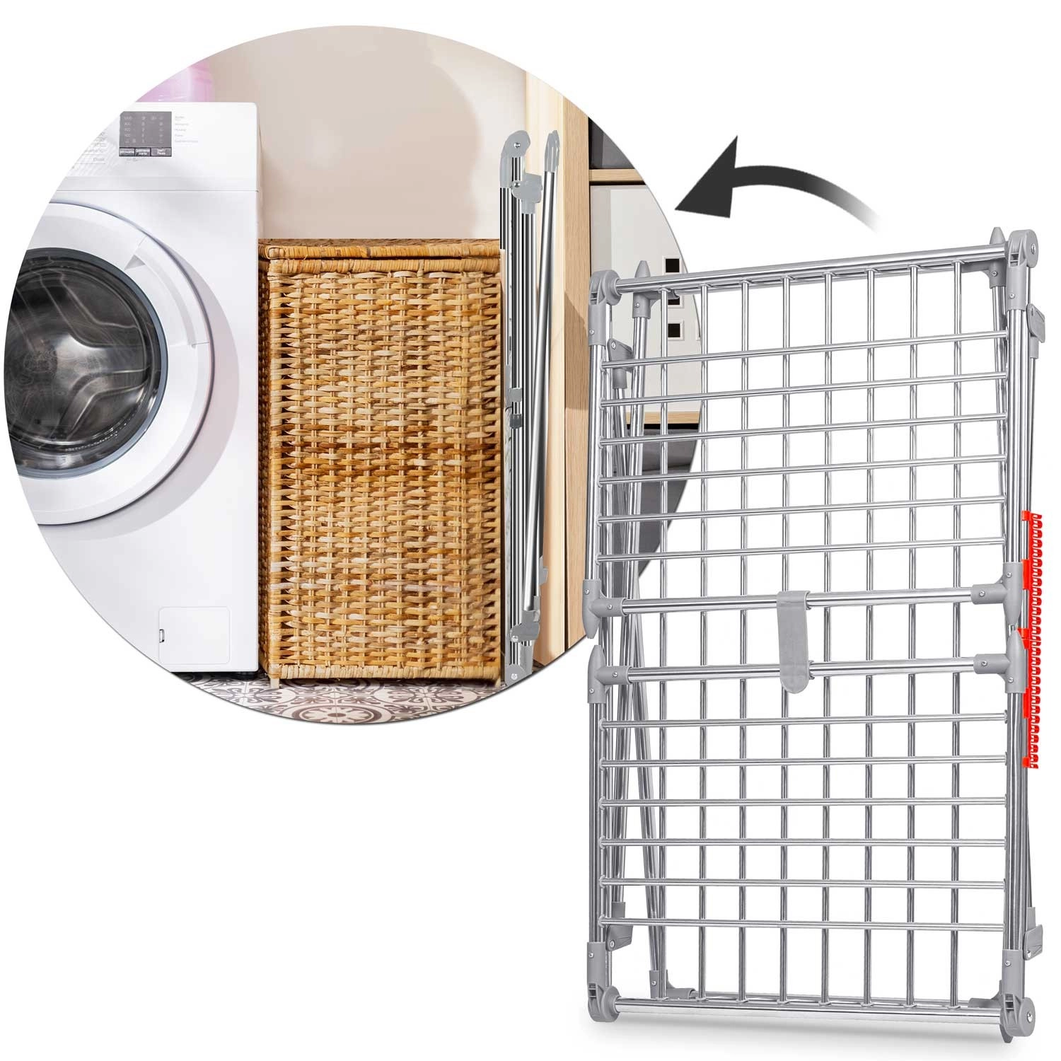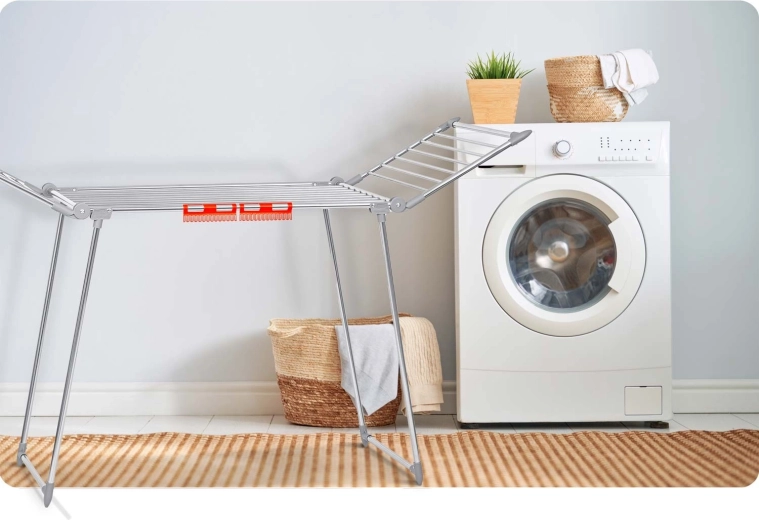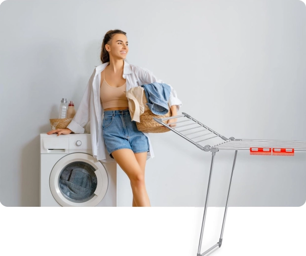 Dwa rozkładane skrzydła i przemyślany układ prętów oferują aż 19 metrów powierzchni suszenia – idealnie do rodzinnego prania.