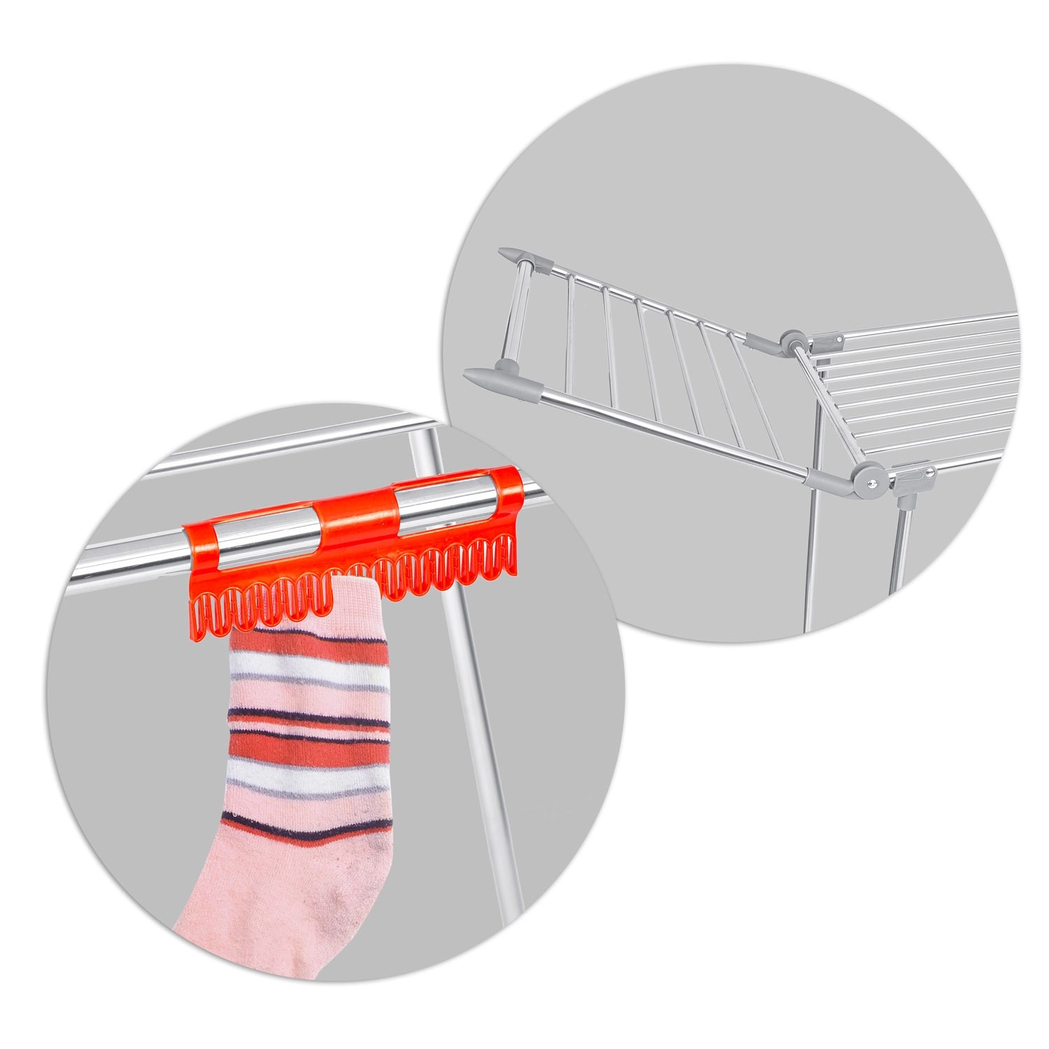 Praktyczne, zintegrowane klipsy oszczędzają miejsce i przyspieszają suszenie skarpetek oraz bielizny bez konieczności użycia żabek.