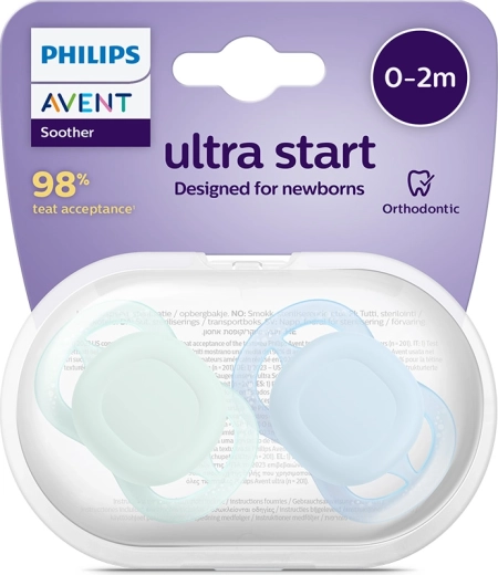 Ukoisz swoje maleństwo od pierwszego dnia ze smoczkiem PHILIPS AVENT UltraSoft 0–2 m. Dzięki małej i lekkiej konstrukcji idealnie pasuje do drobnych ust, miękka silikonowa końcówka jest delikatna dla dziąseł, a wentylowana osłonka zapewnia lepszy przepływ powietrza. W zestawie znajduje się praktyczne etui do sterylizacji i przechowywania, które ułatwia higienę w domu i w podróży.