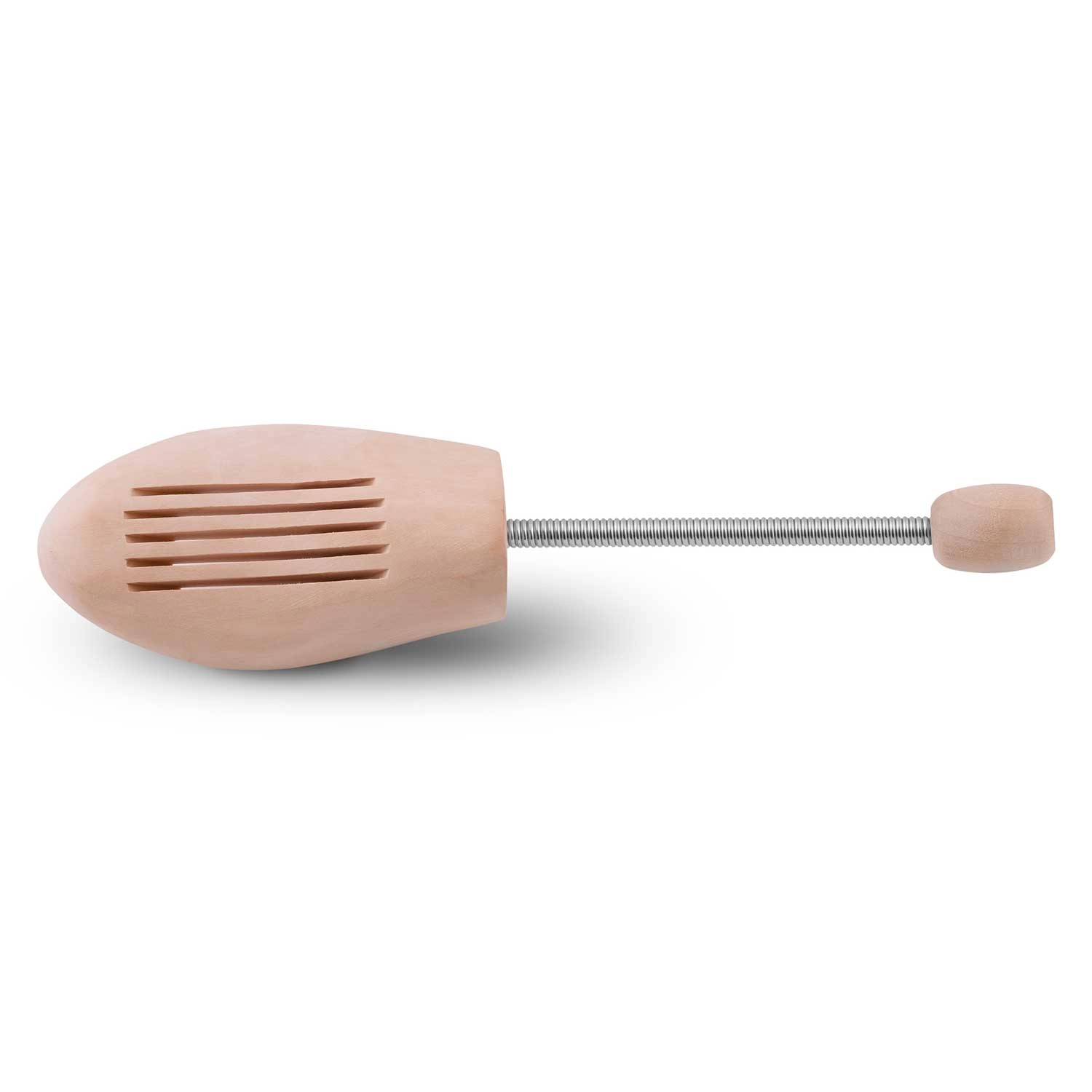 Dzięki uniwersalnej konstrukcji sprężynowej prawidła łatwo dopasowują się do długości i szerokości butów w rozmiarze 44/45. Są idealne do skórzanych półbutów, mokasynów i derby, pomagając utrzymać pierwotny kształt czubka i podbicia. Każdy egzemplarz jest unikalny dzięki naturalnemu usłojeniu drewna, dlatego wygląd może się nieznacznie różnić.