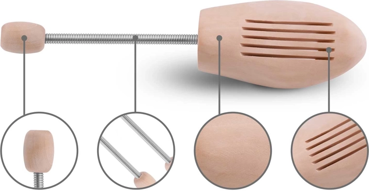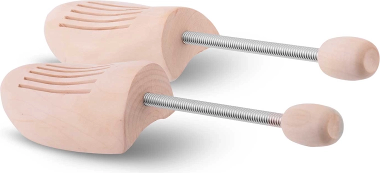 Utrzymuj swoje eleganckie buty w perfekcyjnym kształcie dzięki drewnianym prawidłom MASSIDO. Dzięki mechanizmowi sprężynowemu i naturalnemu drewnu sosnowemu prawidła zapobiegają powstawaniu zagnieceń, utrzymują kształt obuwia oraz pochłaniają wilgoć, co wydłuża żywotność Twoich butów. Rozmiar 42/43, zestaw 2 szt.