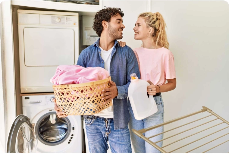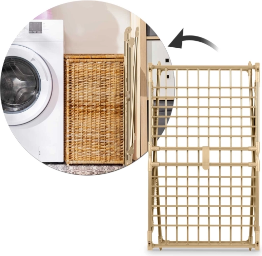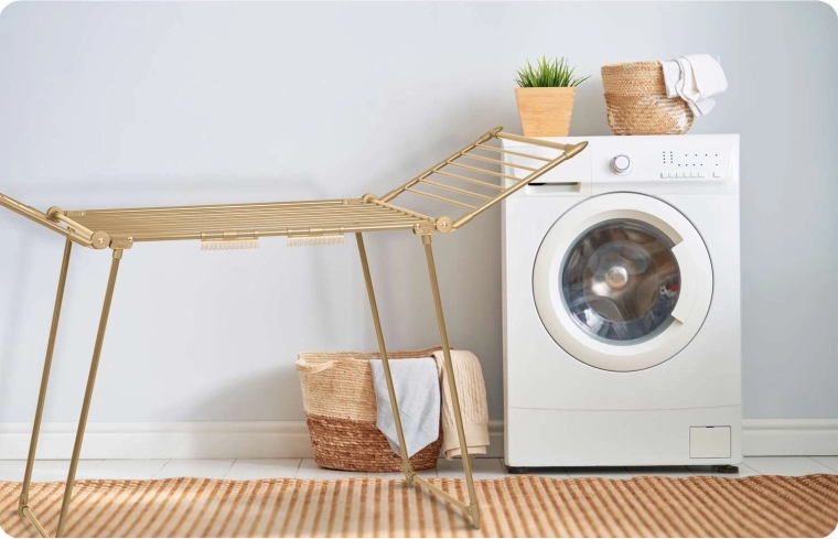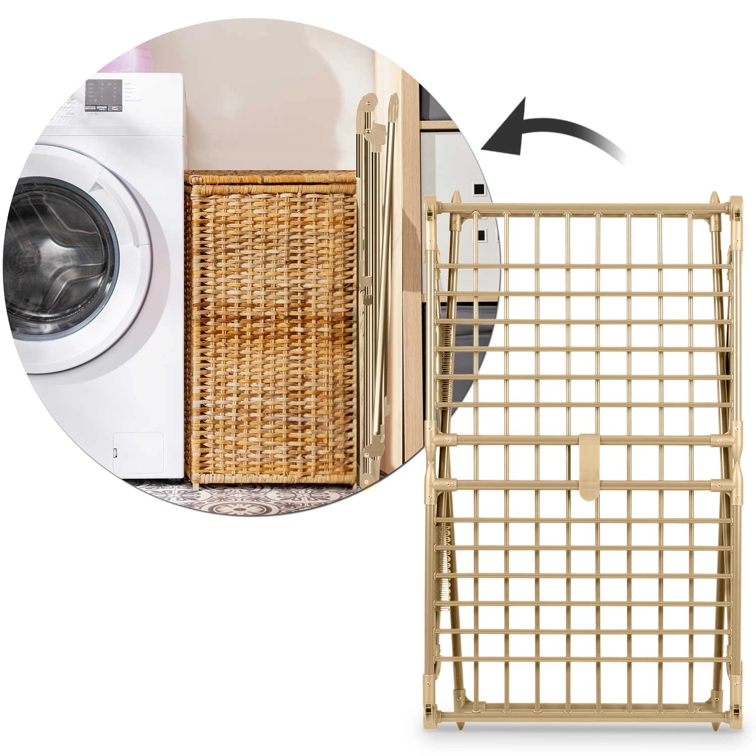 Po wysuszeniu prania suszarkę łatwo złożyć na płasko i odłożyć obok pralki lub do szafy.