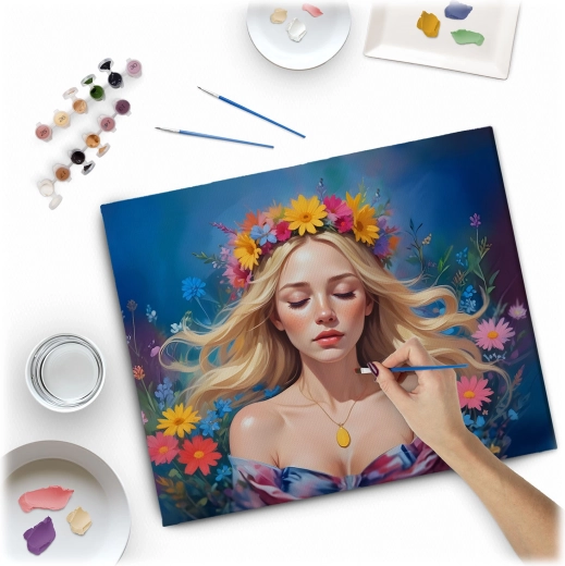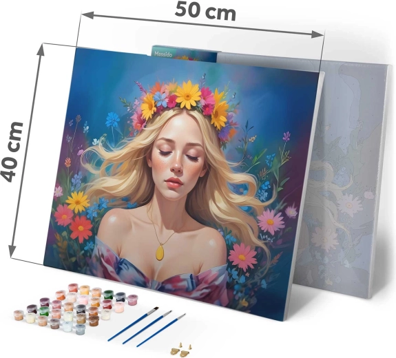 Odkryj radość tworzenia z wysokiej jakości zestawem malarstwa po numerach w formacie 40×50 cm. Na wstępnie zadrukowanym płótnie z delikatnym podmalowaniem z łatwością wyczarujesz żywy portret kobiety, nawet bez wcześniejszego doświadczenia. W opakowaniu znajdziesz 30 kryjących farb akrylowych, 3 precyzyjne pędzle oraz haczyki do zawieszenia – wszystko gotowe do natychmiastowego malowania.