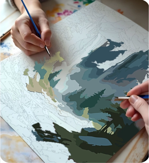 Malowanie po numerach to aktywność towarzyska i kojąca. Dzielcie się kreatywnością, kolorami i radością z powstającego krok po kroku dzieła.