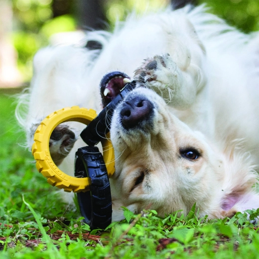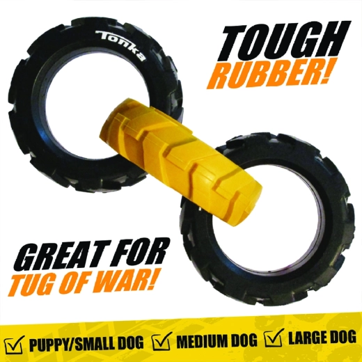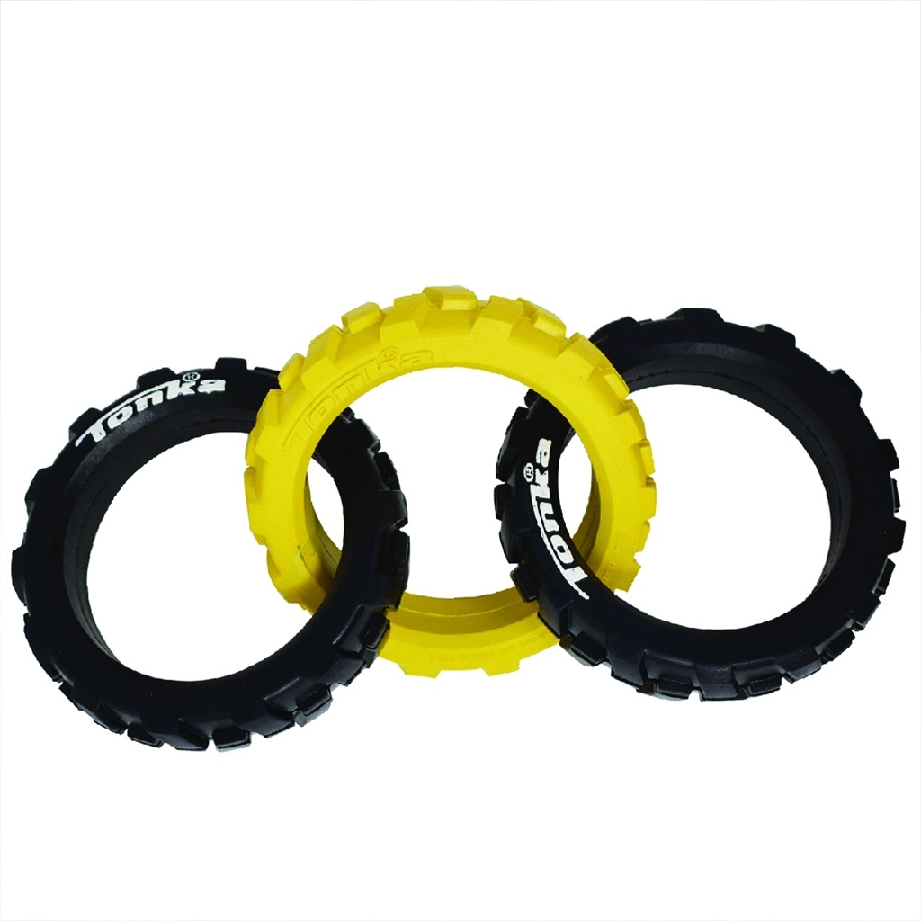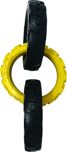 Zabawkę Tonka tworzą trzy solidne pierścienie z elastycznym, przypominającym oponę wzorem, które świetnie leżą w pysku i dłoni. Dzięki połączeniu wytrzymałej gumy i przemyślanego kształtu poradzi sobie z intensywnym przeciąganiem, a jednocześnie jest bezpieczna do codziennej zabawy.