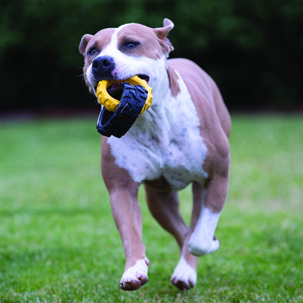Wyrazista tekstura bieżnika zapewnia świetny chwyt w mokrych i suchych warunkach, dzięki czemu masz większą kontrolę nad zabawą, a pies łatwo chwyta zabawkę.