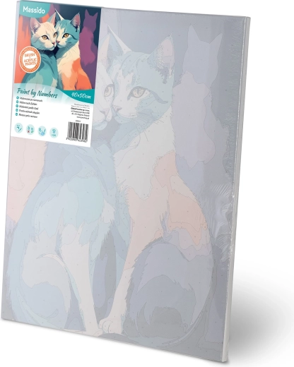 Odkryj radość tworzenia z obrazem Malarstwo po numerach Massido w rozmiarze 40 × 50 cm z motywem kotów. Otrzymasz wysokiej jakości płótno na ramie, 30 kryjących farb akrylowych, 3 pędzle gratis oraz haczyki do zawieszenia. Dzięki kolorowemu podkładowi z delikatnymi liniami piękny efekt uzyskają nawet całkowici początkujący.