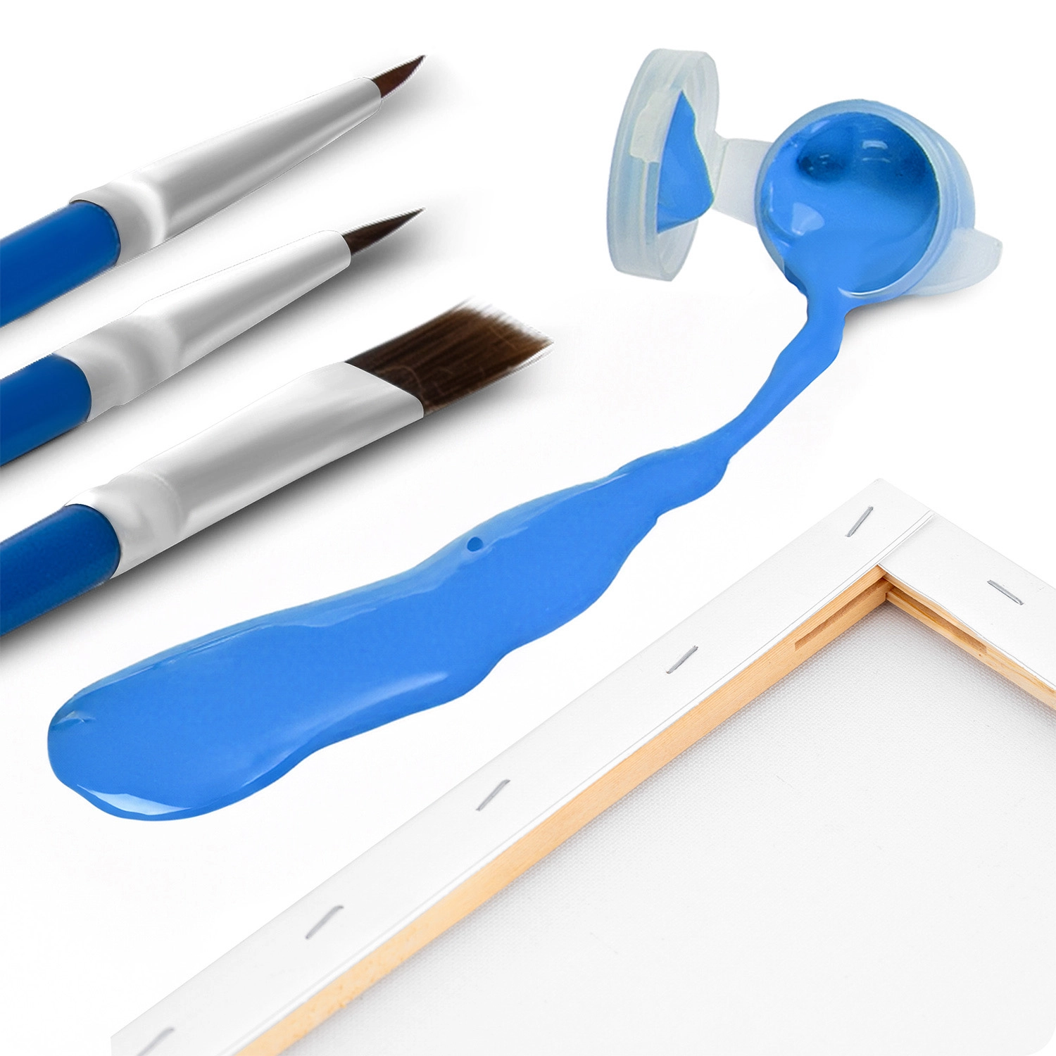 W opakowaniu znajdziesz 30 nasyconych farb akrylowych o pełnym kryciu oraz trzy pędzle (1 mm, 2 mm, 7 mm) do tła, krawędzi i najdrobniejszych detali.