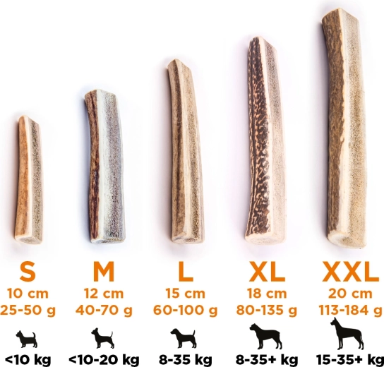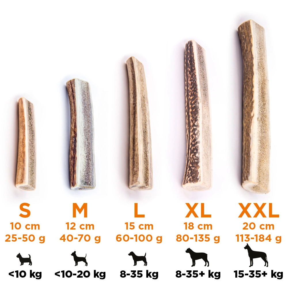 Wskazówka: Zawsze nadzoruj psa podczas żucia i wymień poroże na czas, jeśli stanie się zbyt małe.
