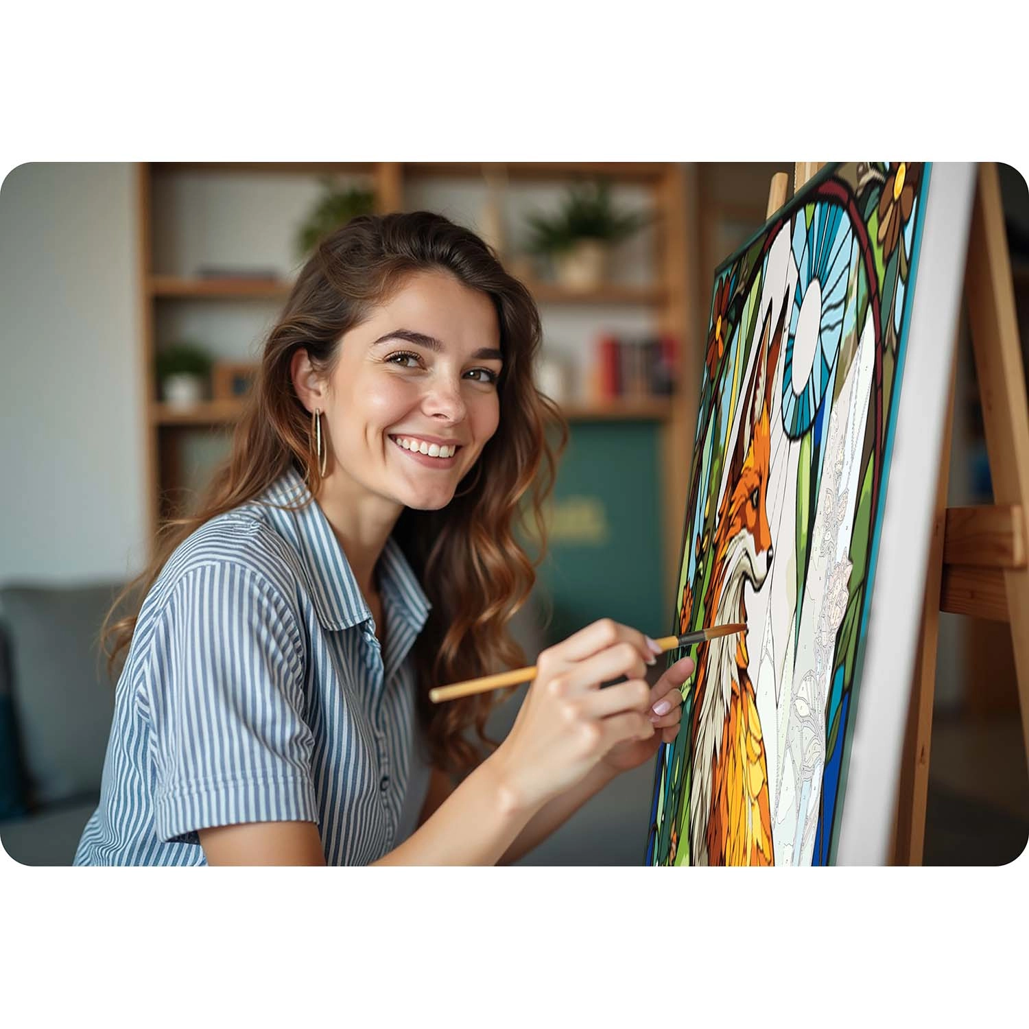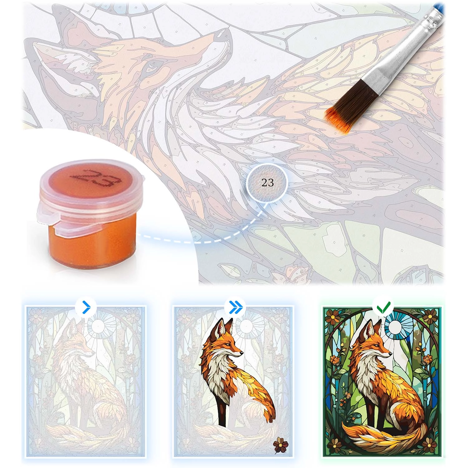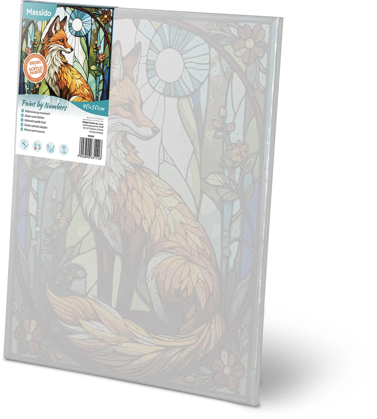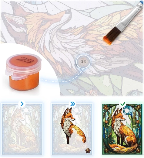 Ten kompletny zestaw marki MASSIDO jest idealny dla dorosłych i dzieci, które chcą się zrelaksować, a jednocześnie przynieść do domu własnoręcznie namalowany obraz. Delikatnie zadrukowane płótno na drewnianej ramie bezpiecznie poprowadzi Cię przez numery i kolory krok po kroku, aby efekt końcowy stanowiła świetlista lisica pełna detali.