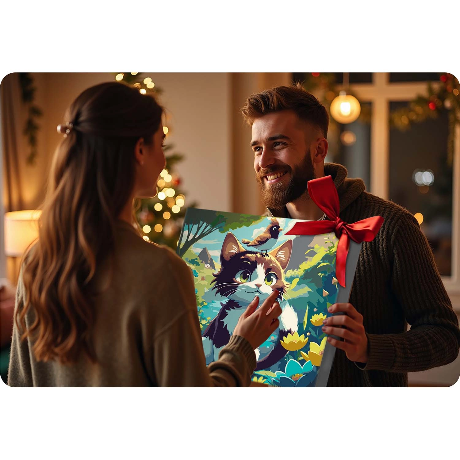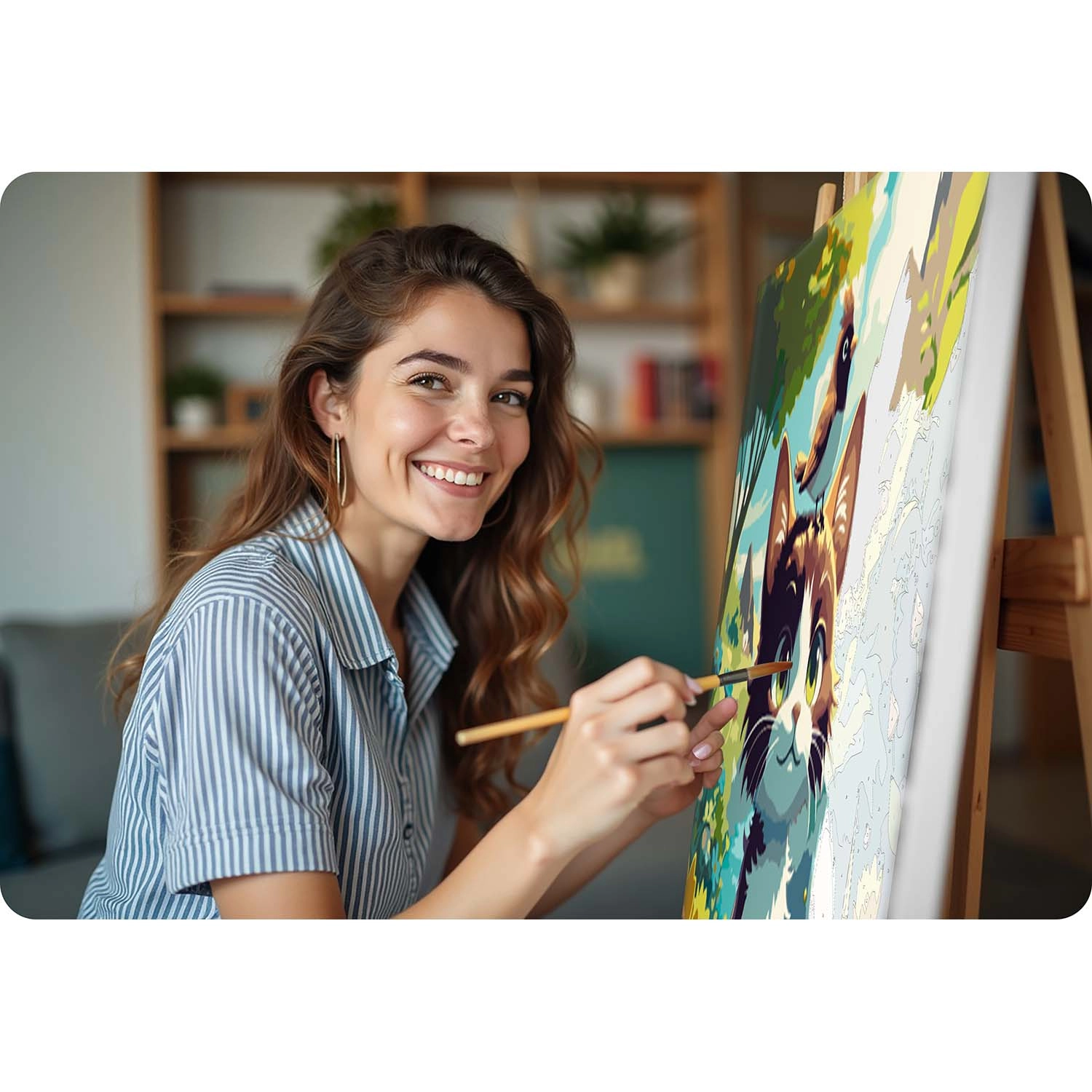 Odkryj radość tworzenia z wysokiej jakości zestawem malarstwa po numerach 40×50 cm od MASSIDO. Wstępnie nadrukowane płótno z delikatnym podmalowaniem i ponumerowanymi polami, 30 kryjących farb akrylowych, 3 precyzyjne pędzle oraz zestaw do zawieszenia dla łatwej ekspozycji gotowego dzieła. Idealny dla początkujących i zaawansowanych – podążaj za numerami i stwórz urzekający obraz kociaka z wyrazistymi, nasyconymi kolorami bez przebijania linii.