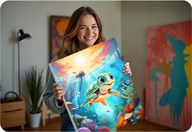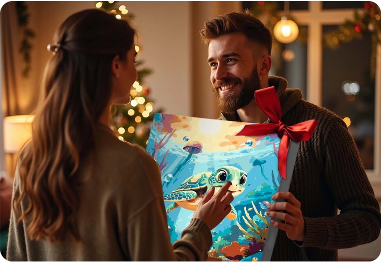 Odkryj radość tworzenia z zestawem 40×50 cm malarstwa po numerach od Massido – uroczy motyw żółwika pod wodą, wysokiej jakości płótno na ramie, aż 30 kryjących kolorów, 3 pędzle oraz haczyki do zawieszenia. Idealny dla początkujących i zaawansowanych, do kreatywnego relaksu oraz jako prezent pełen barw.