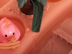 Ruchome elementy i kolorowe kaczuszki zachęcają do zabawy oraz wspierają koncentrację i spostrzegawczość.