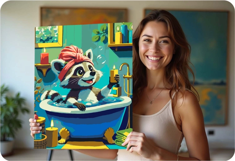 Malowanie po numerach 40 × 50 cm – uroczy szop w wannie MASSIDO