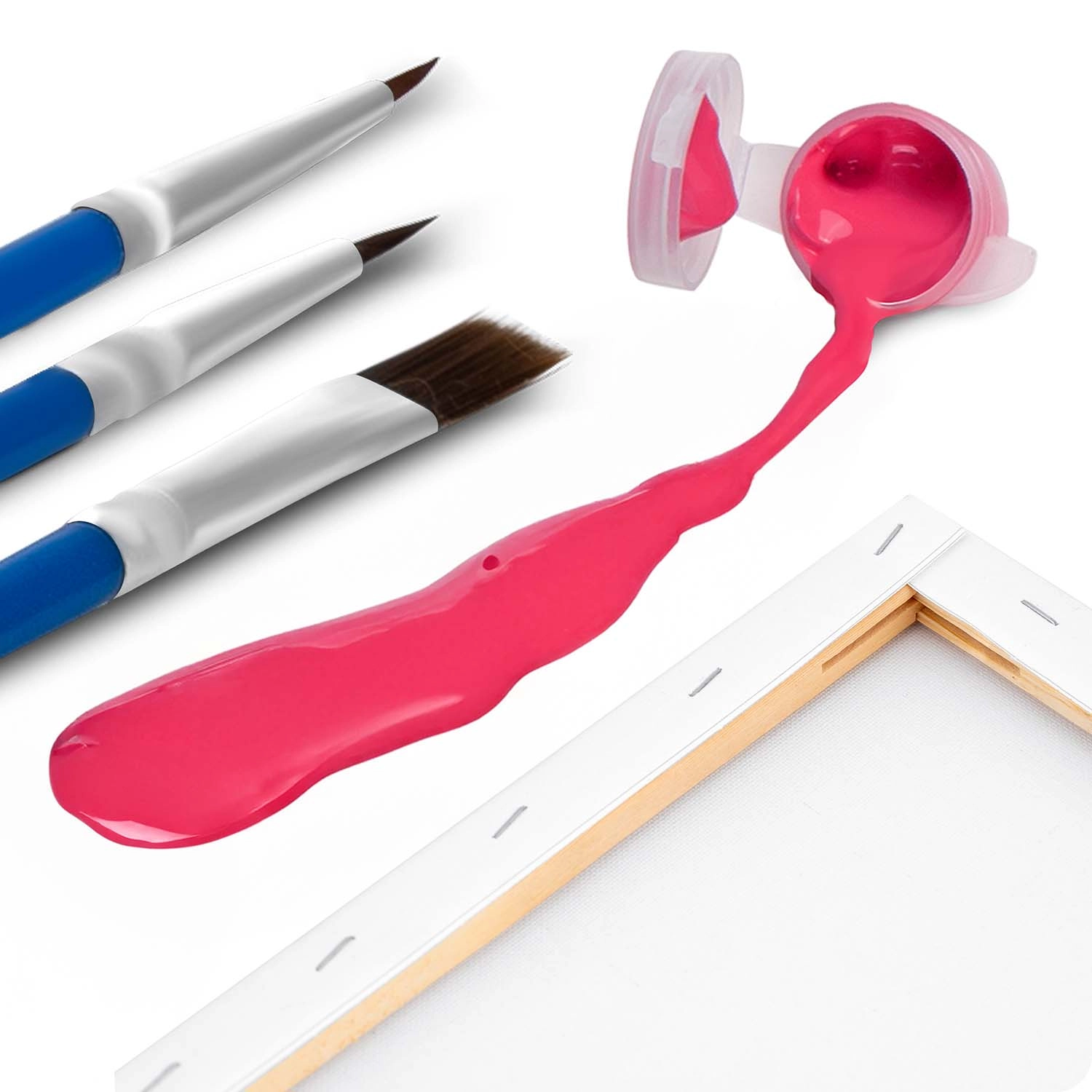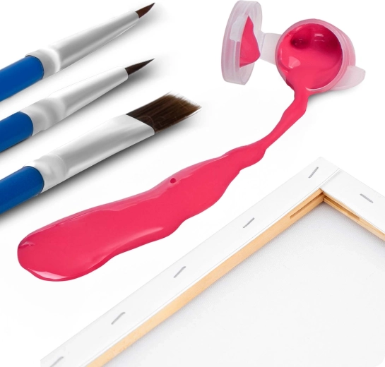 Kompletny zestaw zawiera naciągnięte płótno z wzorem, 30 kryjących farb akrylowych i 3 pędzle – możesz zacząć malować od razu po rozpakowaniu.