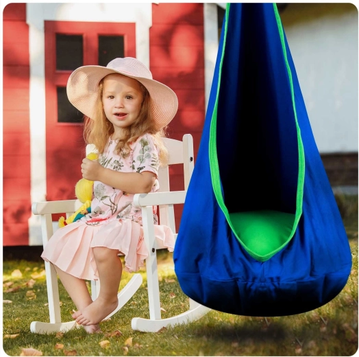 Wygodny dziecięcy wiszący kokon NEO‑SPORT w kolorze niebieskim to świetne miejsce na relaks i delikatne kołysanie w domu i w ogrodzie. Oferuje miękkie siedzisko z poduszką, mocne szwy oraz trwały materiał o udźwigu do 80 kg. Pokrowiec materiałowy można prać w pralce, a po złożeniu zajmuje minimum miejsca.
