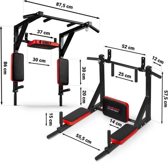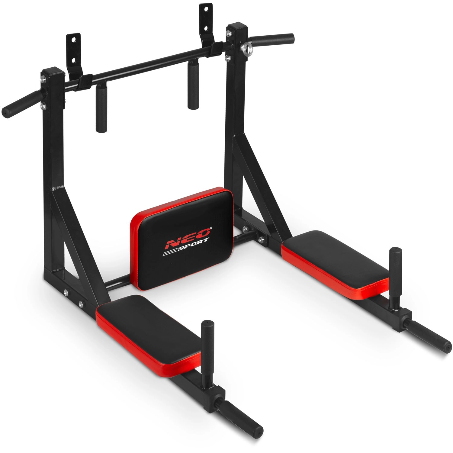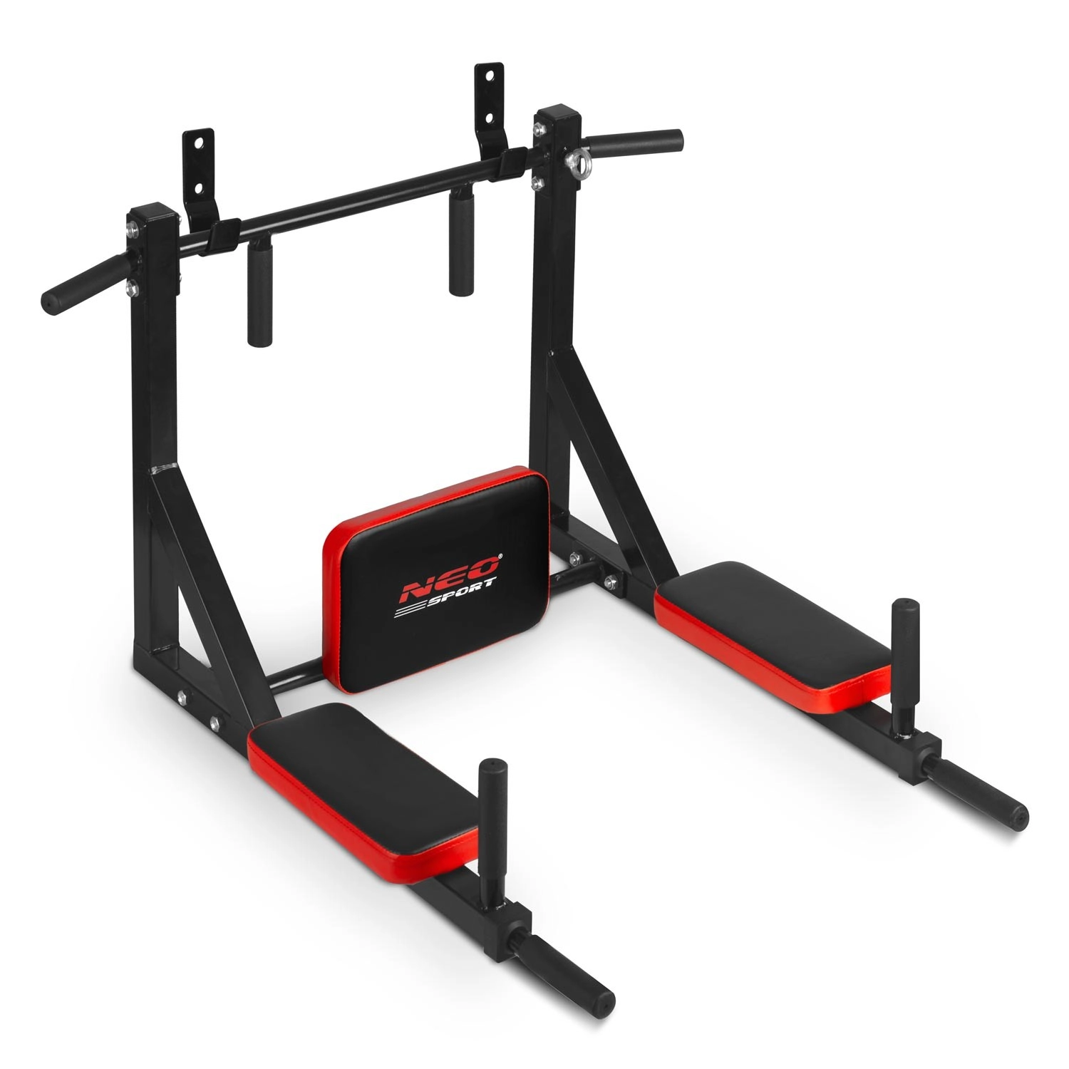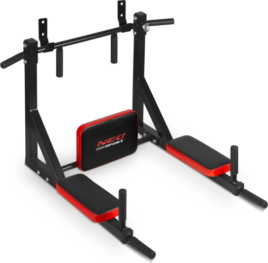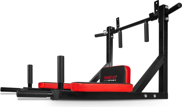 Drążek ścienny z oparciem NEO SPORT NS-319 to uniwersalne rozwiązanie do domowego treningu siłowego. Solidna stalowa rama z komfortowymi, wyściełanymi oparciami na przedramiona i plecy zapewnia stabilność i wygodę przy ćwiczeniach takich jak podciągania, dipy, unoszenie kolan i nóg. Osiem antypoślizgowych chwytów wspiera bezpieczny i zróżnicowany trening.