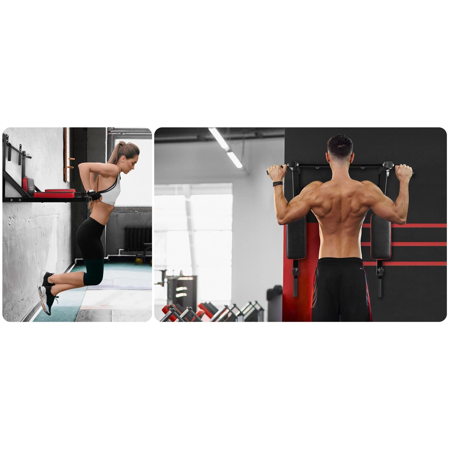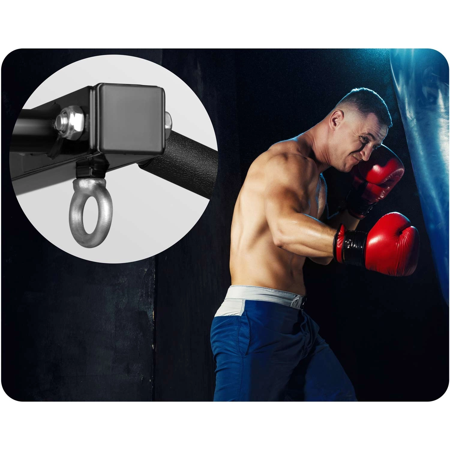 Dzięki sprytnej konstrukcji 2w1 możesz łatwo obrócić drążek i efektywnie zmieniać ćwiczenia na różne partie mięśni. Konstrukcja o wysokiej nośności 150 kg i profilowanych rurach 38 × 38 mm gwarantuje odporność nawet przy intensywnym użytkowaniu. W zestawie znajdziesz kompletny zestaw kotew do solidnego montażu ściennego oraz praktyczny hak do zawieszenia worka bokserskiego.