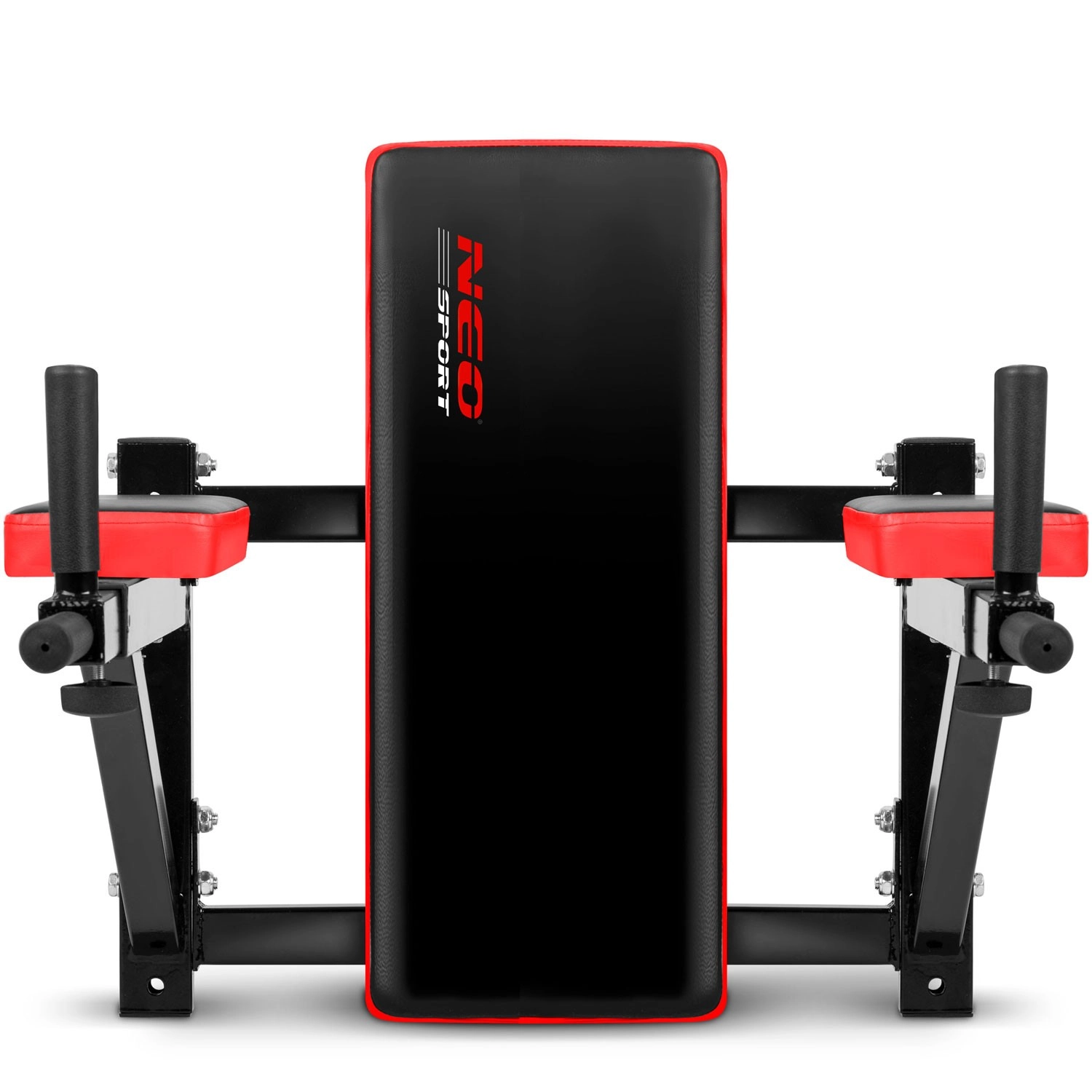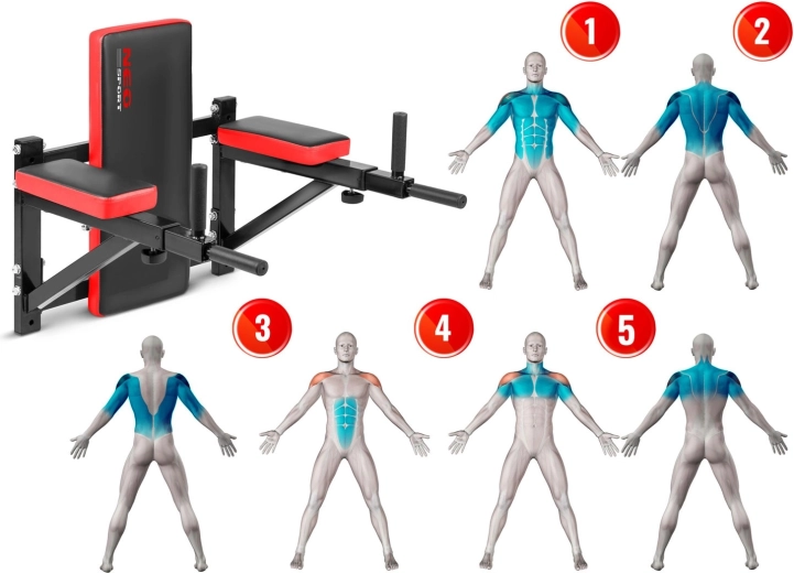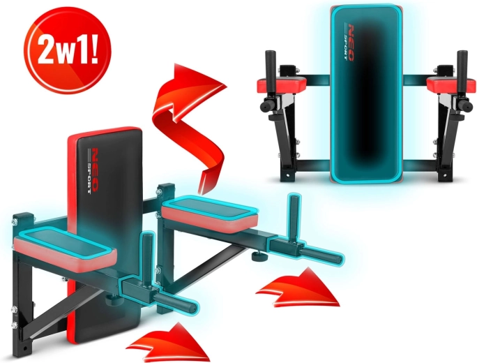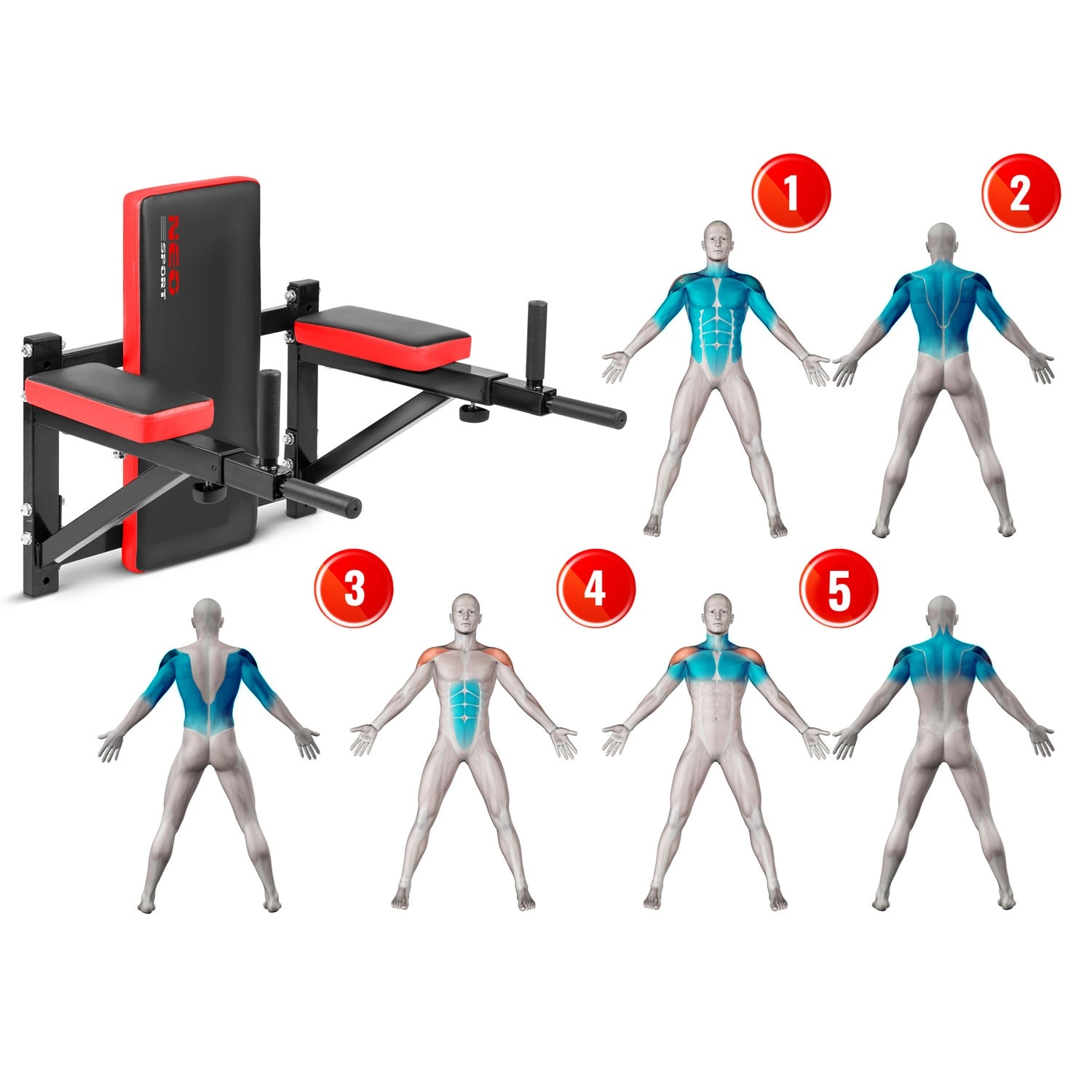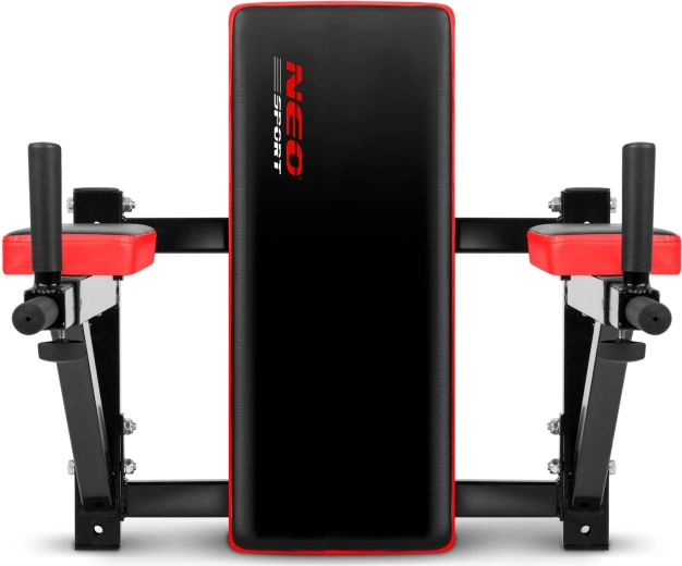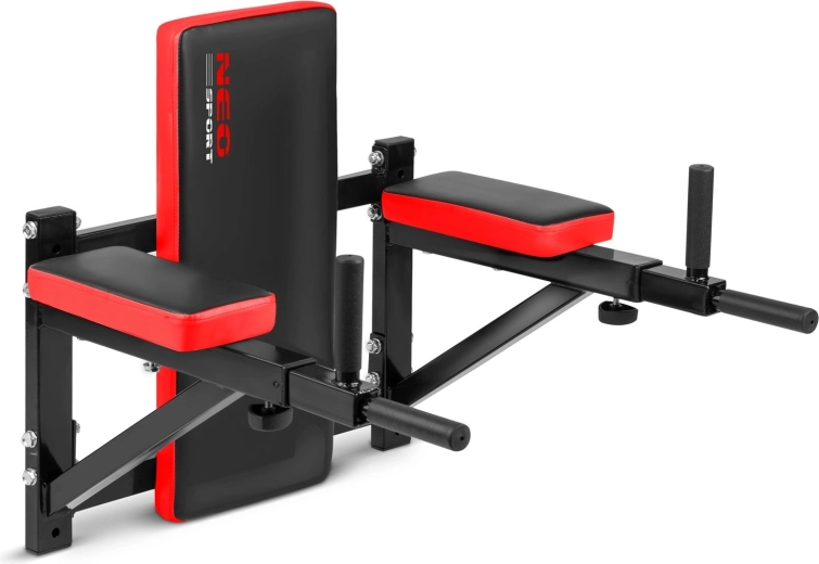 NEO SPORT NS-320 to niezawodna stacja ścienna do dipów i unoszenia kolan/nóg, która pomoże ci wzmocnić core, wyrzeźbić ramiona i plecy oraz spalać kalorie. Solidna stalowa rama, grube wyściełanie oparcia i podłokietników oraz cztery antypoślizgowe uchwyty zapewniają stabilność i komfort nawet podczas intensywnego treningu.