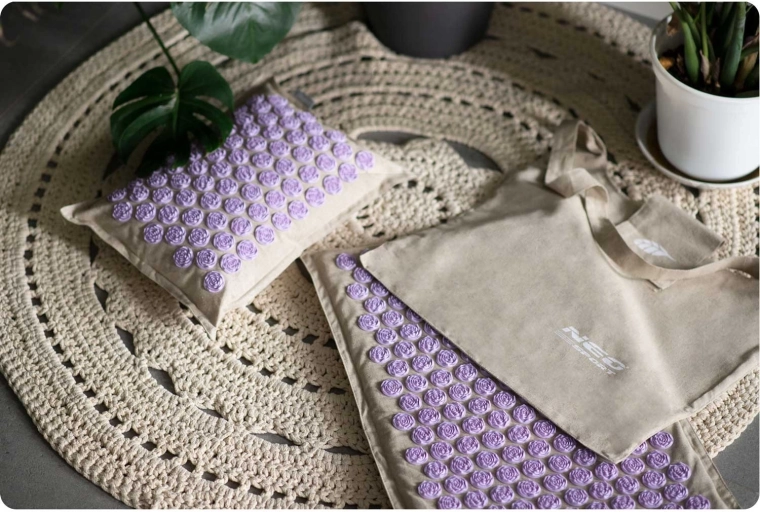 Zestaw akupresurowy NEO-SPORT łączy naturalne materiały i skuteczną stymulację punktów uciskowych. Rozety lotosu mocowane technologią Heat-Press zapewniają trwałość i bezpieczne użytkowanie, a połączenie lnu i bawełny w pokrowcu jest przyjemne dla skóry i świetnie dopasowuje się do ciała. Regularne używanie przynosi rozluźnienie napięcia mięśniowego, wsparcie krążenia i szybką regenerację po wymagającym dniu.