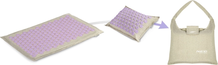 Odkryj relaks i ulgę w napięciu z zestawem do akupresury NEO-SPORT – matą i poduszką z lawendowymi dyskami lotosu. Dzięki 181 wypustkom na macie i 76 na poduszce wspiera krążenie, rozluźnia plecy, kark i głowę oraz pomaga zmniejszyć stres. Naturalne włókno kokosowe wewnątrz, łatwo zdejmowany pokrowiec i stylowa torba do wygodnego przenoszenia.