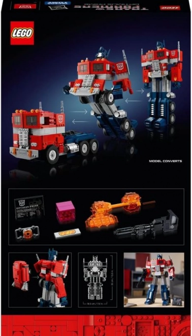 LEGO Optimus Prime 10302 to zestaw 2-w-1 dla dorosłych fanów Transformers, który pozwala zbudować szczegółowy model klasycznego robota. Zawiera 1508 elementów, idealny dla zapalonych kolekcjonerów.