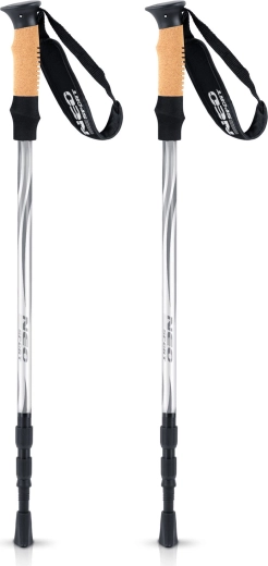 Lekkie i wytrzymałe kije trekkingowe z regulacją długości 65–135 cm do turystyki i nordic walkingu. Oferują antywibracyjny system ANTYSHOCK, ergonomiczne korkowe rączki, regulowaną pętlę nadgarstkową oraz wymienne końcówki na różne nawierzchnie. Wykonane z aluminiowego stopu AL 7075, łączącego wysoką wytrzymałość z niską masą. W zestawie pokrowiec transportowy gratis.